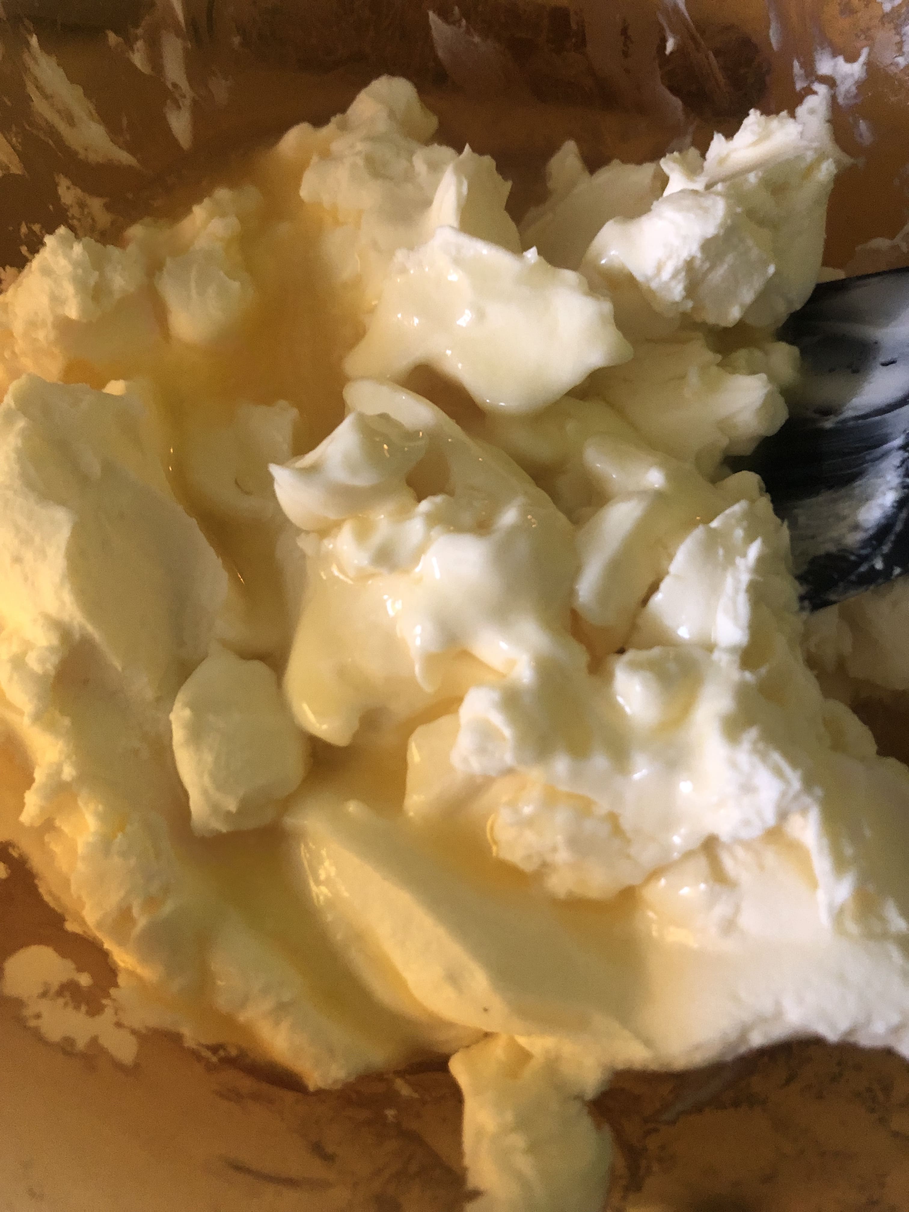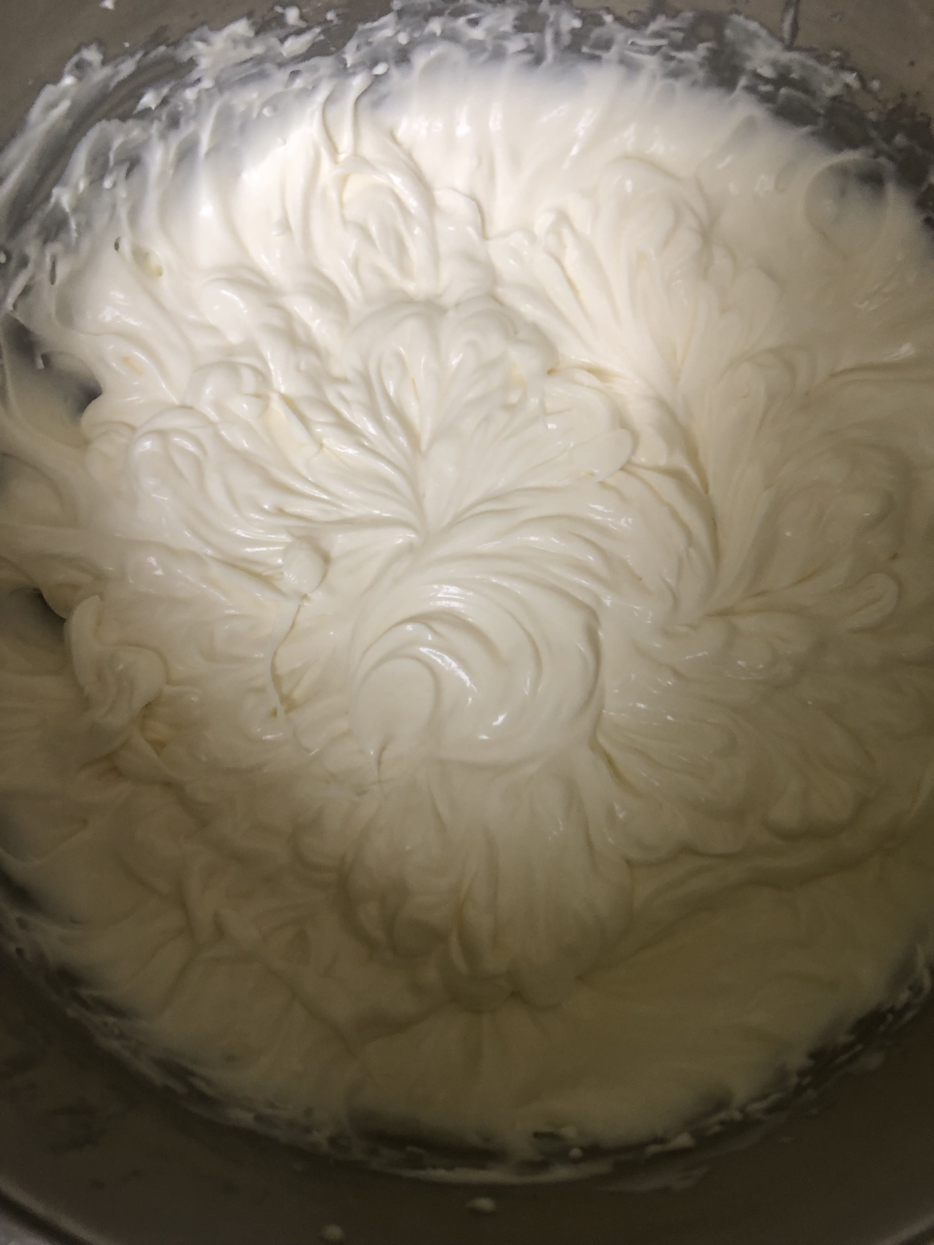 Monta la nata, cuando adquiera textura cremosa agrega el azúcar glass y continúa montando hasta que haga picos. Reserva en el frigo. Tritura el queso mascarpone (con batidora), hasta que quede cremoso.