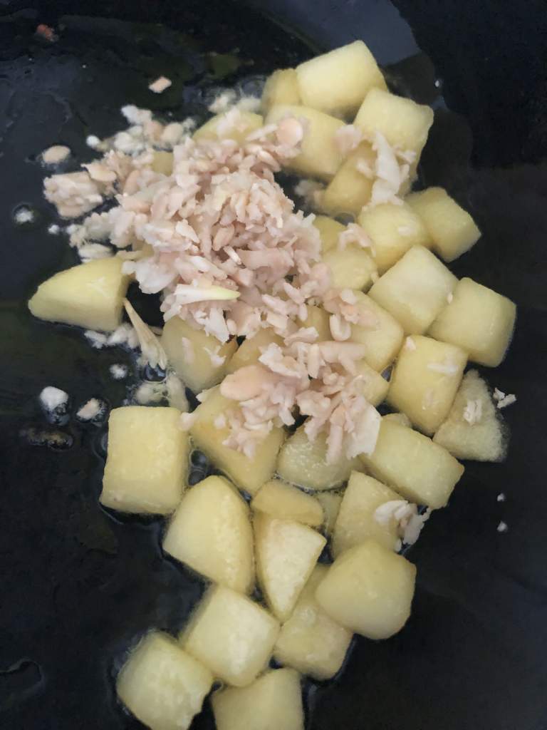 Lava las acelgas, retira las pencas y pica las hojas finamente. Cuece en abundante agua con sal, escurre y reserva. Pela la manzana y córtala en cubos medianos. Cocina en un poco de aceite a fuego medio-bajo hasta que quede blandita. Tritura el ajo y los piñones y añade a la sartén.