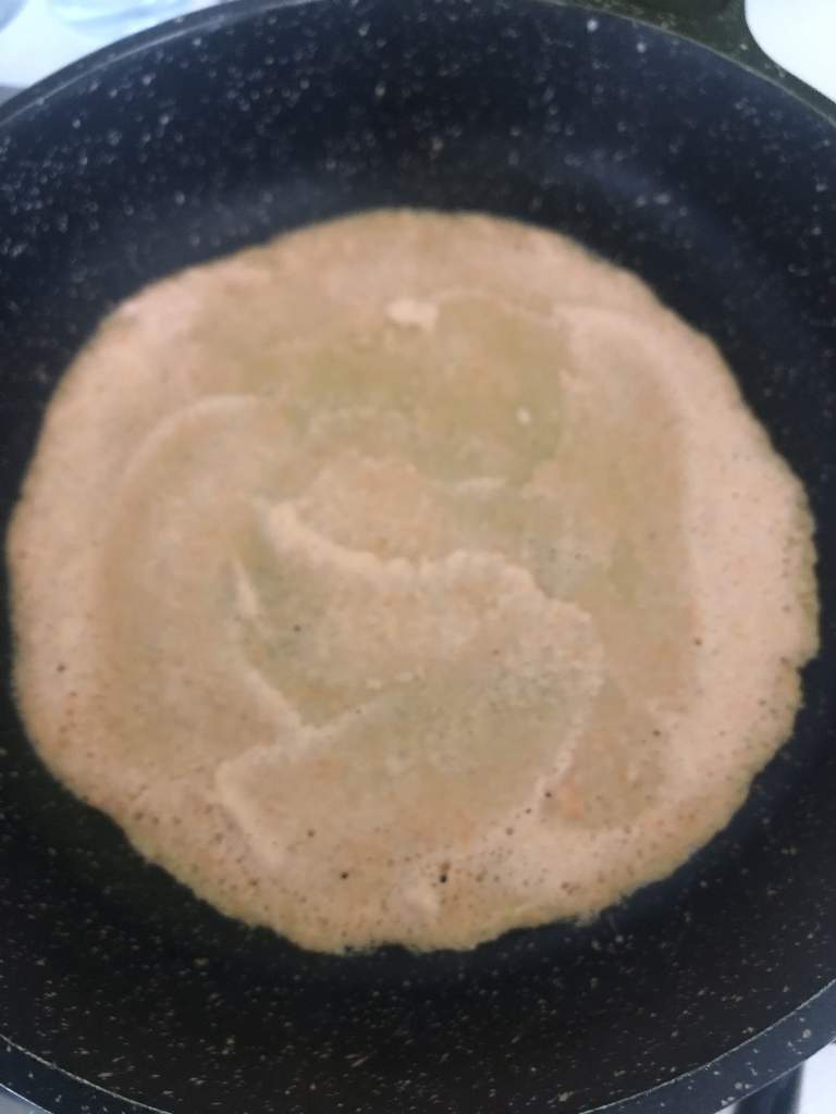 Calienta un poco de aceita (unas gotitas) en una sartén grande o crepera y vierte un poco de la mezcla. Cocina a fuego medio-bajo hasta que la masa se despegue por completo y da la vuelta con cuidado. Cocina 1-2 minutos más por el otro lado. Haz lo mismo con el resto de la masa.