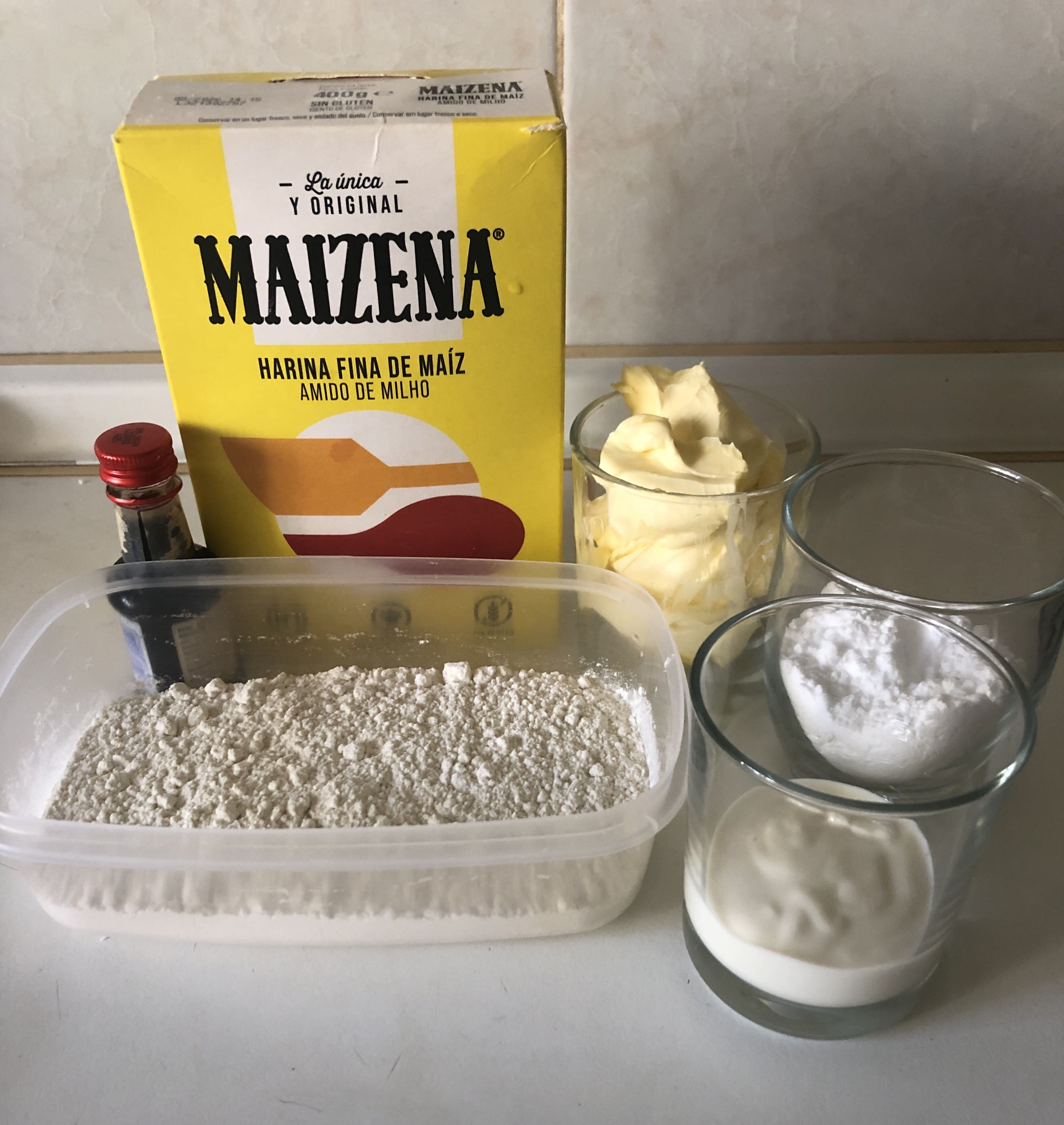 Mezcla la margarina pomada con la vainilla y el azúcar glass. Agrega el yogur e integra. Tamiza la harina y la sal y añade lo anterior. Mezcla hasta conseguir una masa suave (es un poco pegajosa). Coloca en una manga pastelera.