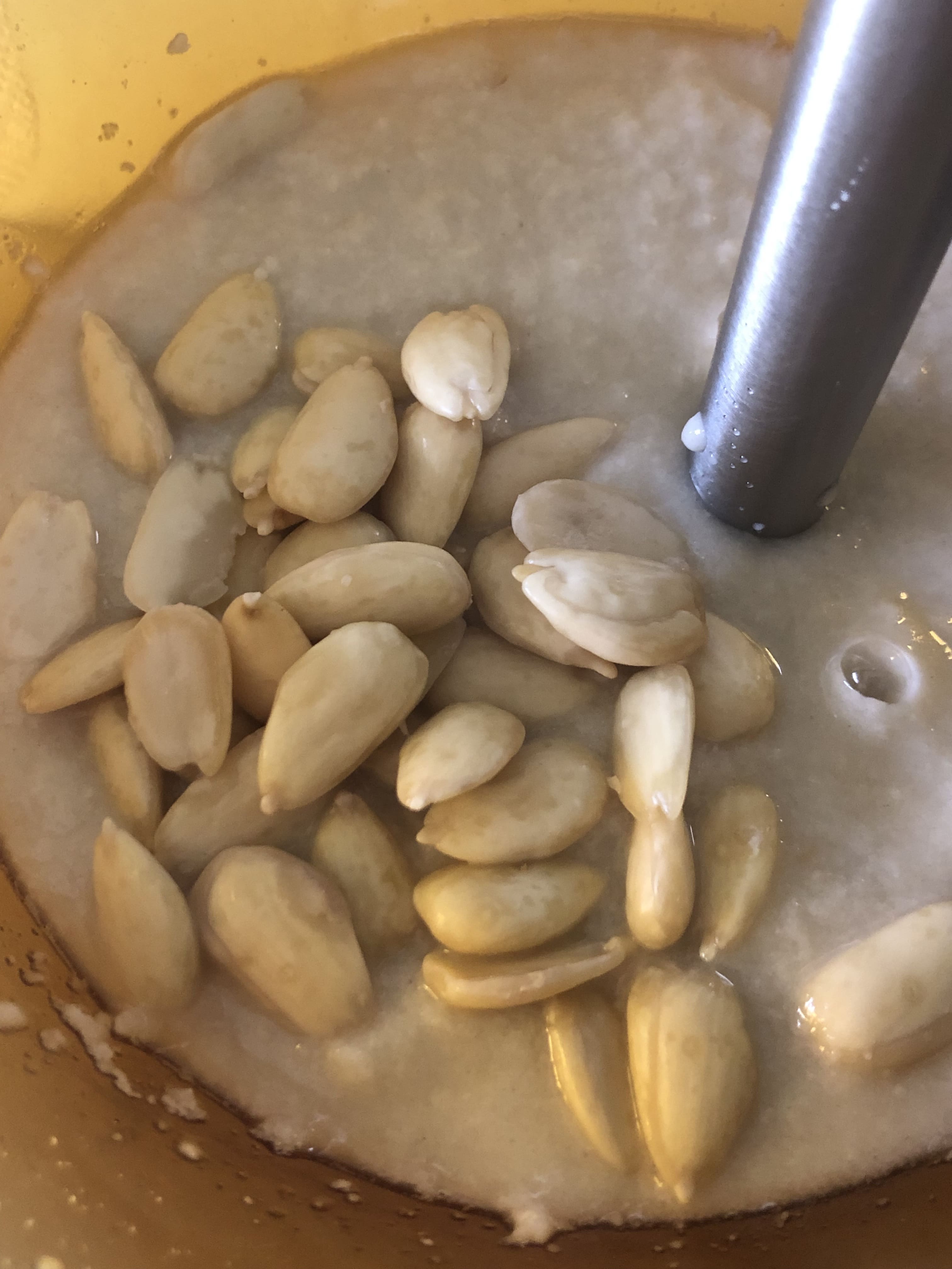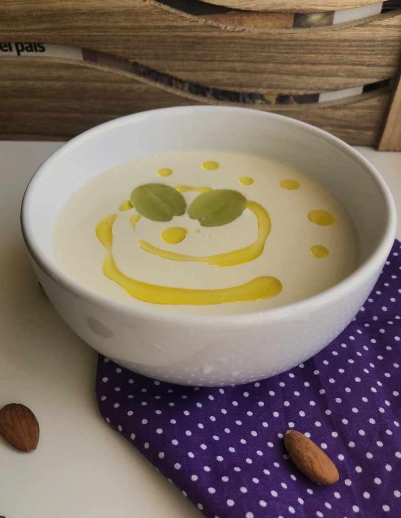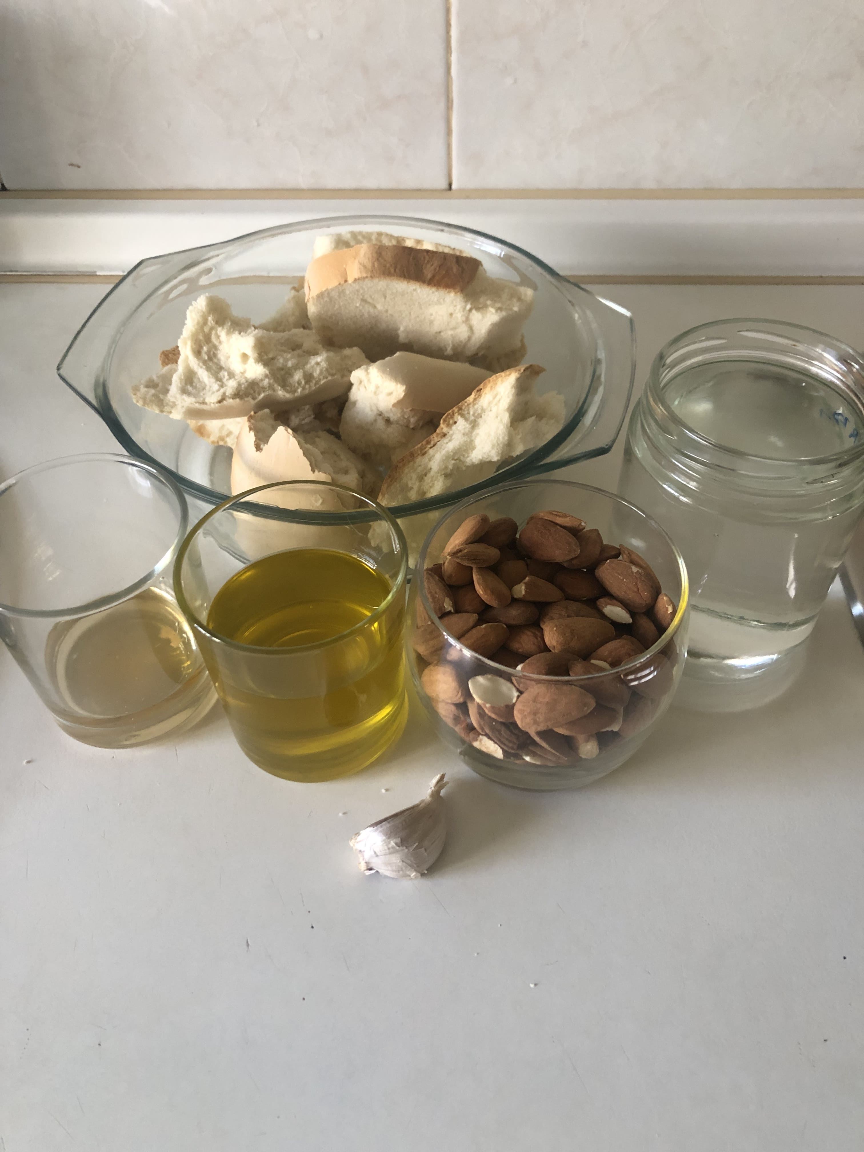 Al principio me resultó bastante extraña y no es para menos: es una sopa fría de pan, almendras y aceite. Pero he de reconocer que me ha sorprendido mucho su sabor y su textura. Además, creo que es una receta estupenda para cuando empiece el buen tiempo.