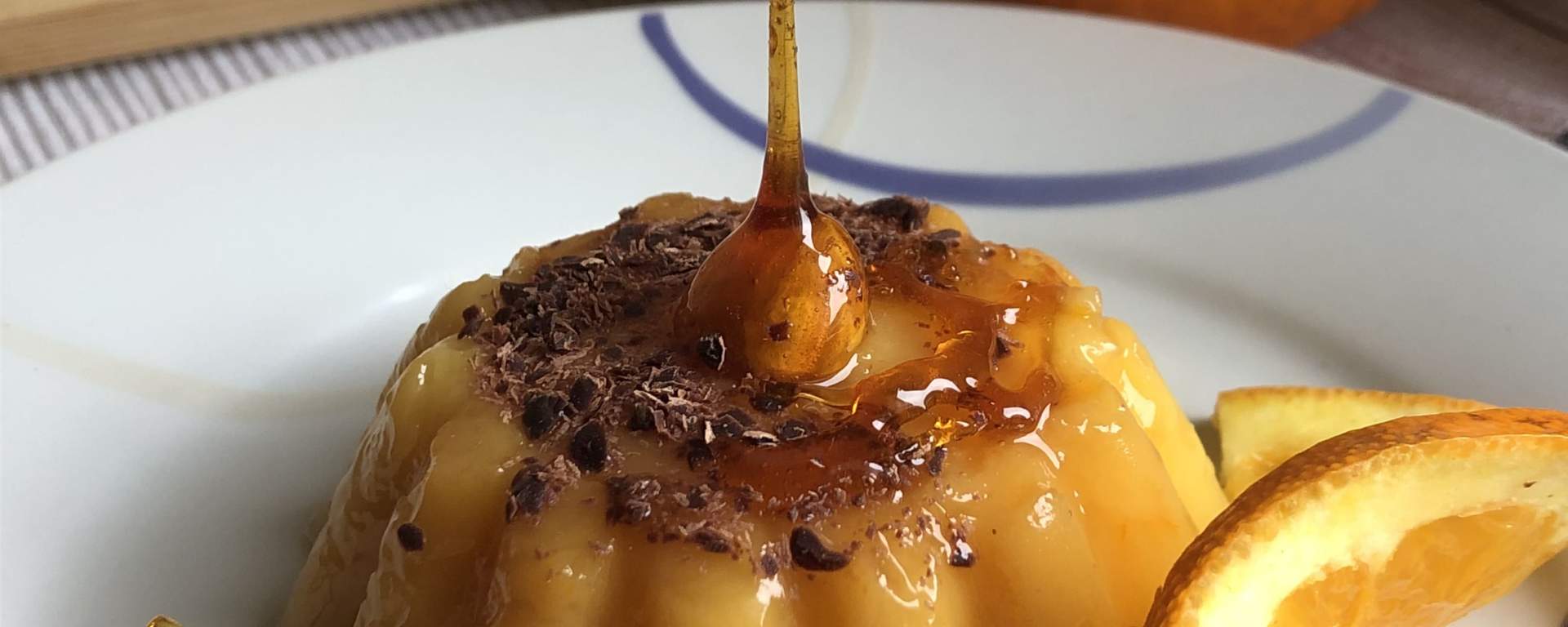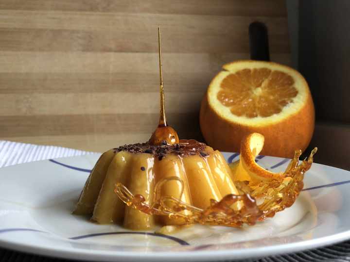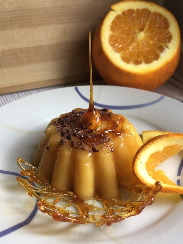 Desde hace ya varios años intento reducir el consumo de alimentos de origen animal y veganizar las recetas. Me resulta divertido, me gusta y voy descubriendo ideas más sanas y conscientes. Es el caso de la receta de hoy. Os traigo un flan de naranja, hecho con maicena, que obviamente no se parece ni en sabor ni en textura al flan de huevo tradicional, pero está delicioso. Queda bastante suave y ligero y tiene un sabor riquísimo. He utilizado bebida vegetal de almendras, porque es más densa y le da un toque muy rico y lo he decorado con caramelo y avellana caramelizada (me dio por experimentar cosillas que había visto por la red).