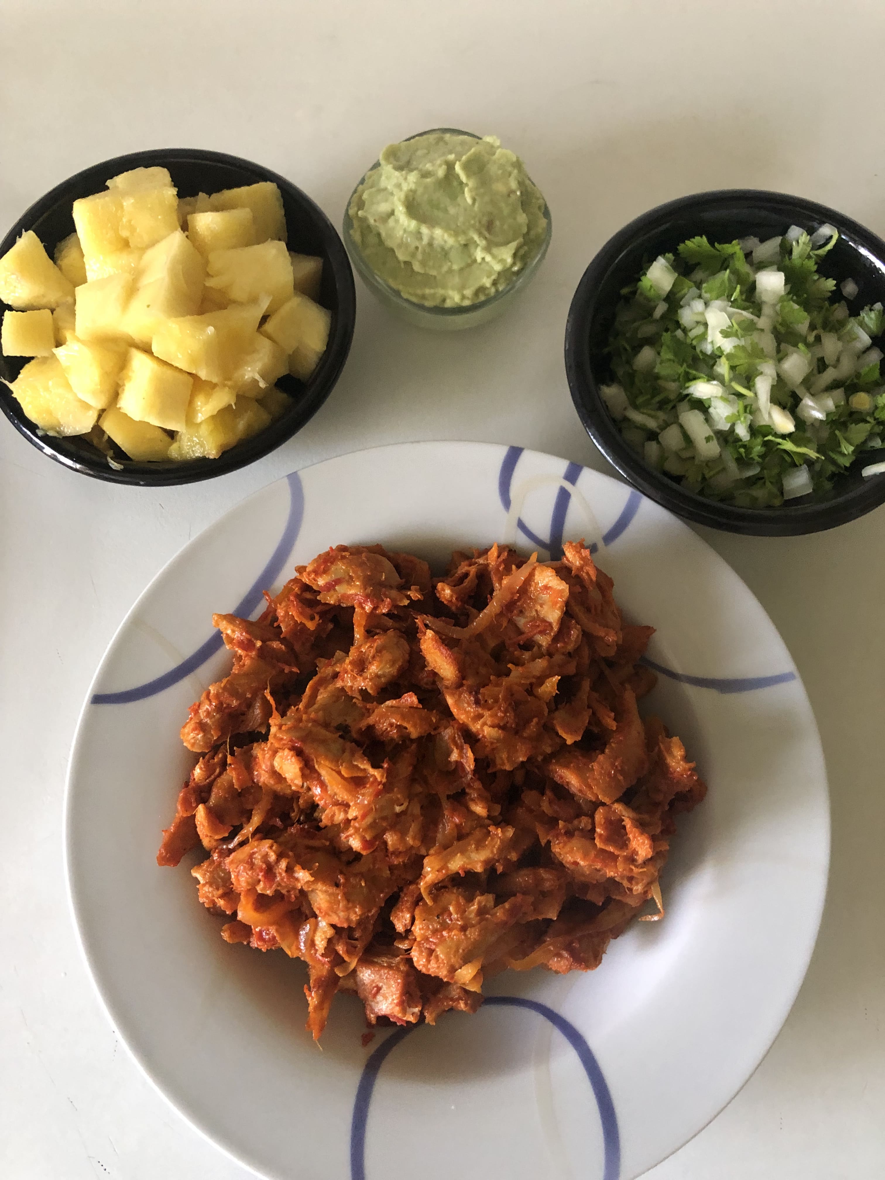 Este mes de marzo participo por primera vez en uno de esos retos, cuya temática no podía ser otra que un especial por el Día de la Mujer. El personaje homenajeado es Frida Khalo, mujer carismática y un ejemplo de lucha y resiliencia donde las haya. La receta, por tanto, debe tener la esencia mexicana. Empecé mi búsqueda por la red para coger algunas ideas y todas me llevaron a este plato, que bien puede definir la gastronomía mexicana: los tacos al pastor. Obviamente, poco tiene que ver con el original, puesto que no lleva carne y además he tenido que adaptar muchos de los ingredientes porque no tengo posibilidad de encontrarlos por aquí. El colorido del plato y la mezcla de sabores me recuerda en cierto modo a Frida, con sus pinturas tan llenas de color y contrastes.