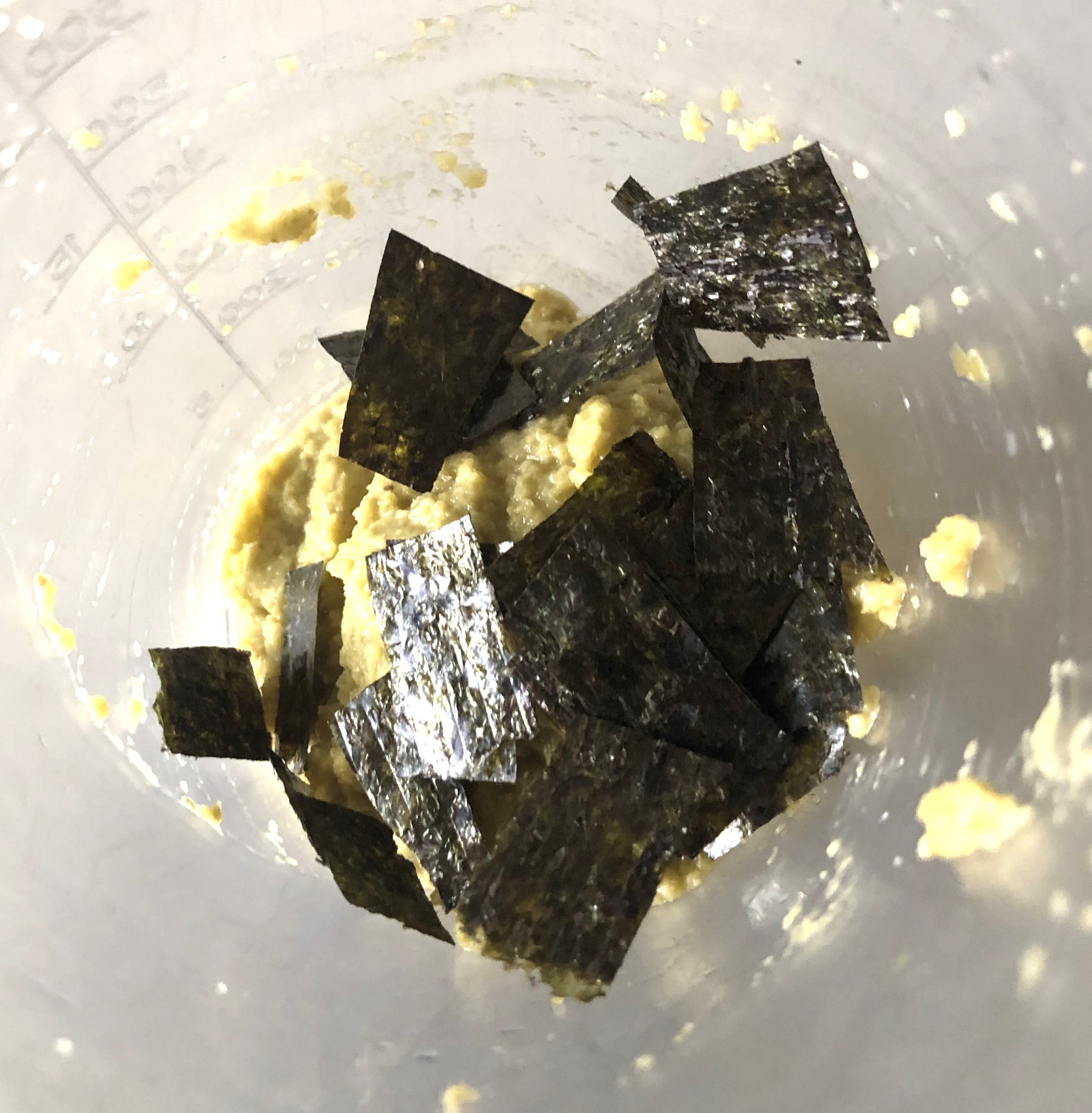 Divide en dos partes y agrega el alga nori a una de las mitades. Tritura nuevamente y disfruta.