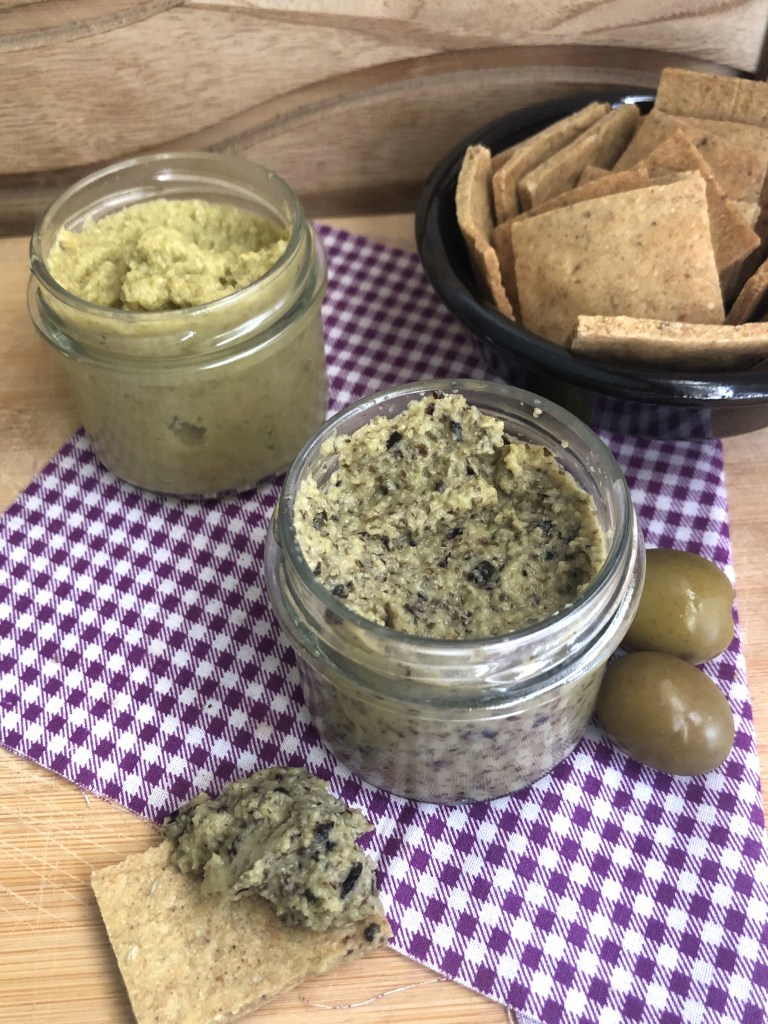 Hace algunos días compartí una receta de crackers de mijo y hoy os traigo el complemento perfecto para ellos. Se trata de un paté vegetal elaborado a base de aceitunas. El procedimiento es simple: triturar y listo. Lo más complicado de la receta es quitar el «pipo» de la aceituna, tarea que tenéis solucionada si las compráis deshuesadas. En mi caso he utilizado producto de casa, por lo que he pasado un ratito entretenida. He hecho dos versiones: la básica y otra con un puntito de sabor a mar (para ello he utilizado alga nori).