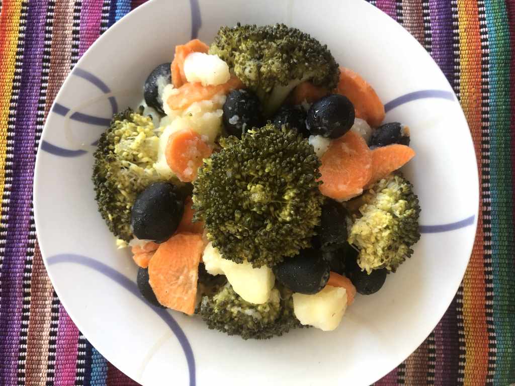 !Hola coliflagüers! El invierno está a punto de dar paso a la primavera, pero aún podemos disfrutar de sus frutos de temporada, entre los que destacan las crucíferas. Ya sé que no a todo el mundo le hacen demasiada gracia, con ese sabor amargo y fuerte que tienen. Pero hoy os traigo una receta que seguro que os llama la atención. Se trata de una ensalada, en la que combino brócoli, patata, zanahoria y aceitunas negras. Hace años le añadía un huevo cocido, pero en este caso os traigo la versión vegana. En ambos casos está riquísima, acompañada por un aliño muy sencillo con aceite de oliva, zumo de limón, sal y una pizca de pimienta negra. Una receta fácil, rápida, sana, nutritiva y llena de color.