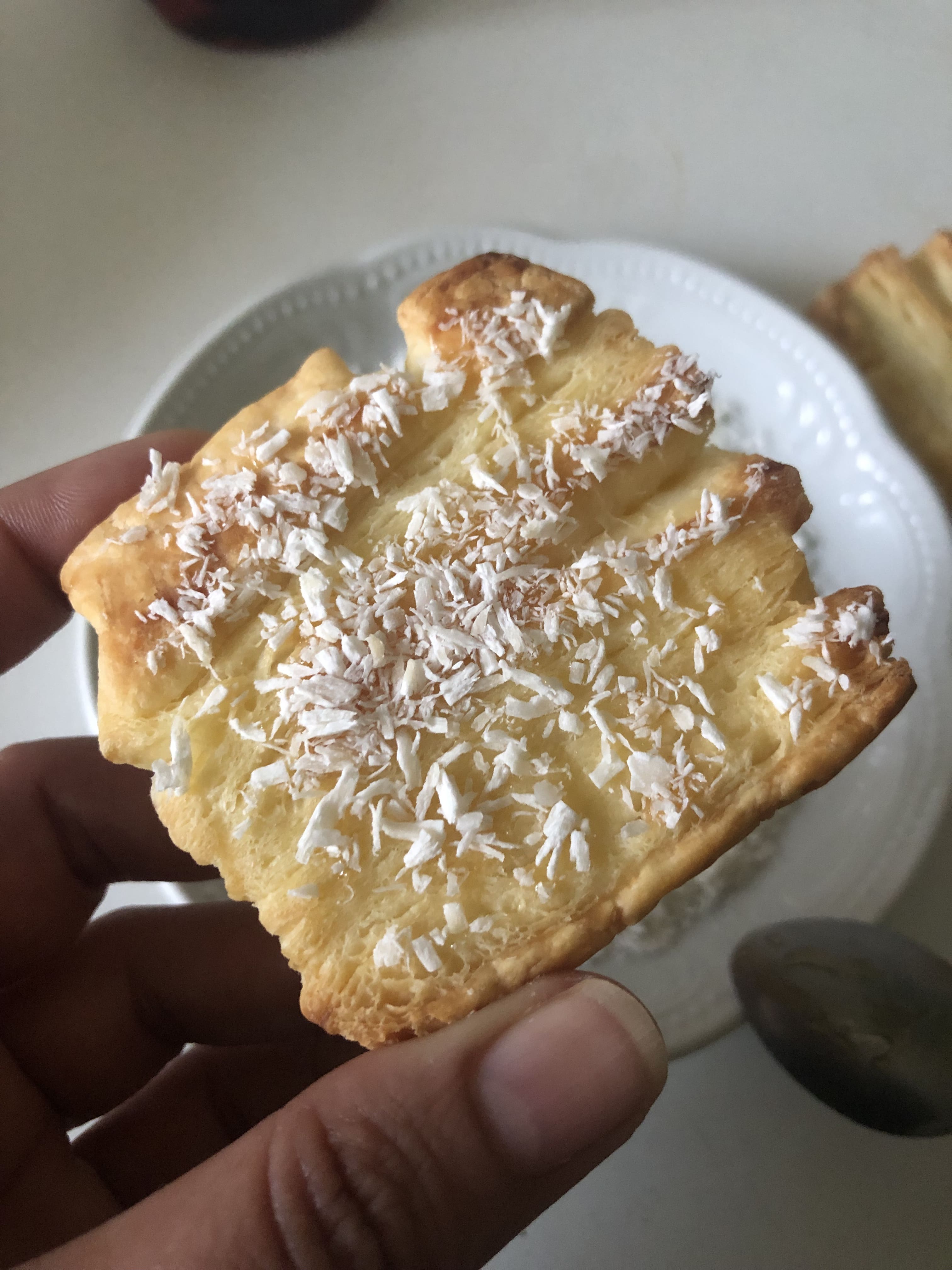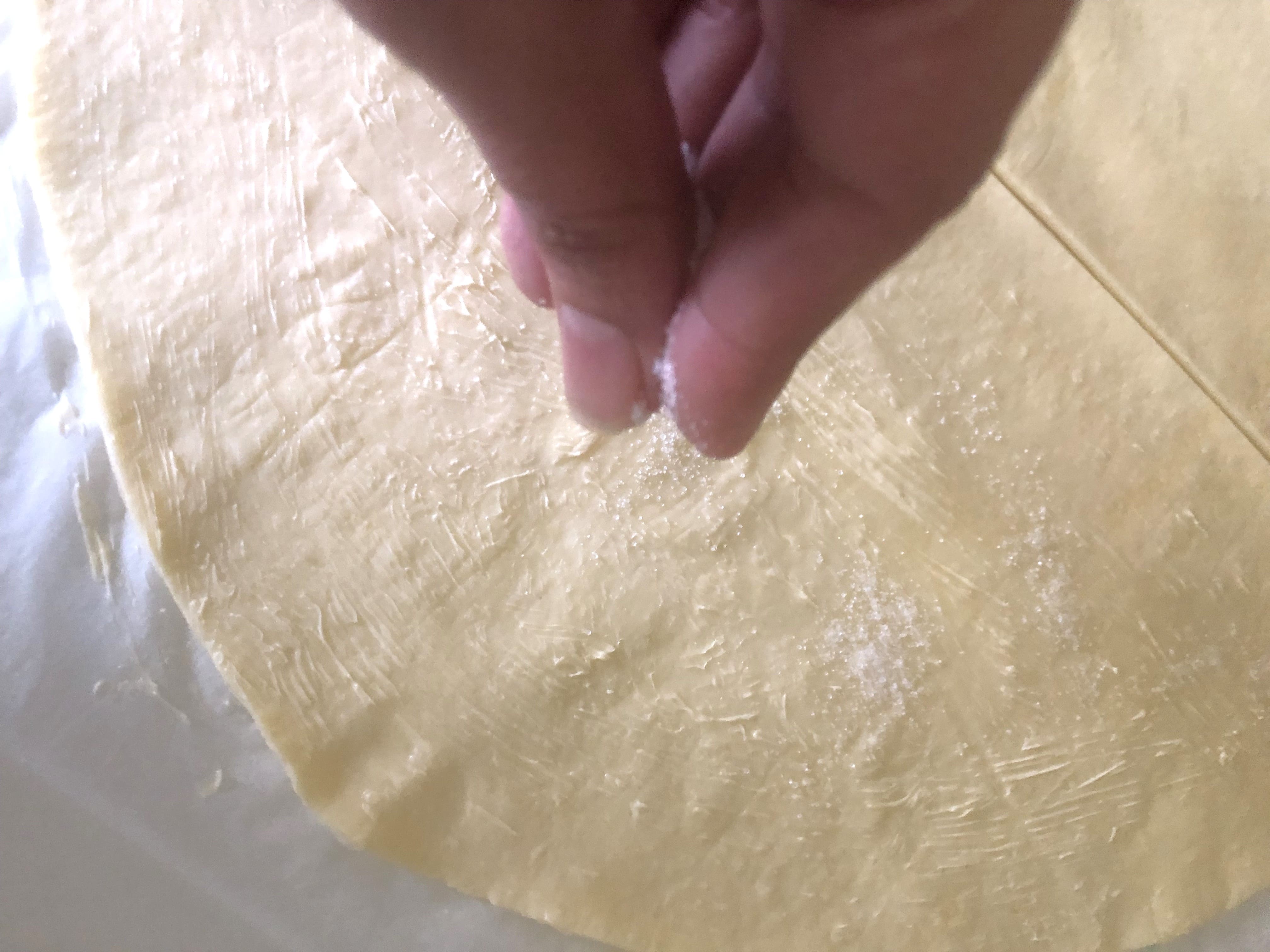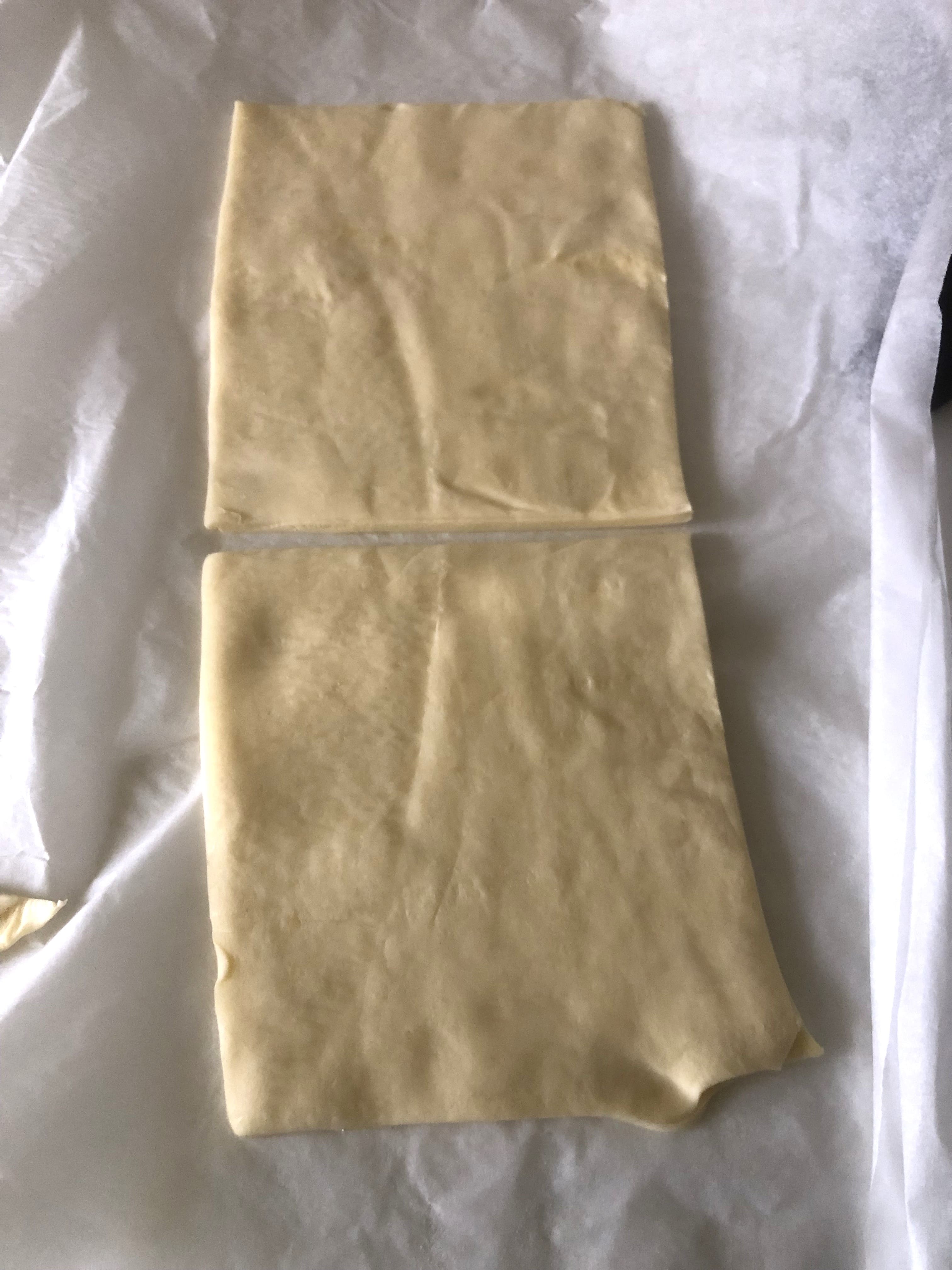 El proceso es simple una vez que sabes cómo funciona: hacer rectángulos y colocar unos sobre otros. Cuando tienes unos cuantos cortas a lo ancho tiras de un dedo de grosor y horneas. Eso empezará a inflarse y separarse formando las capas tan características. Es una delicia. Pero mejor ve a las fotos si quieres entender la forma de hacerlo, porque de palabra parece más enrevesado.