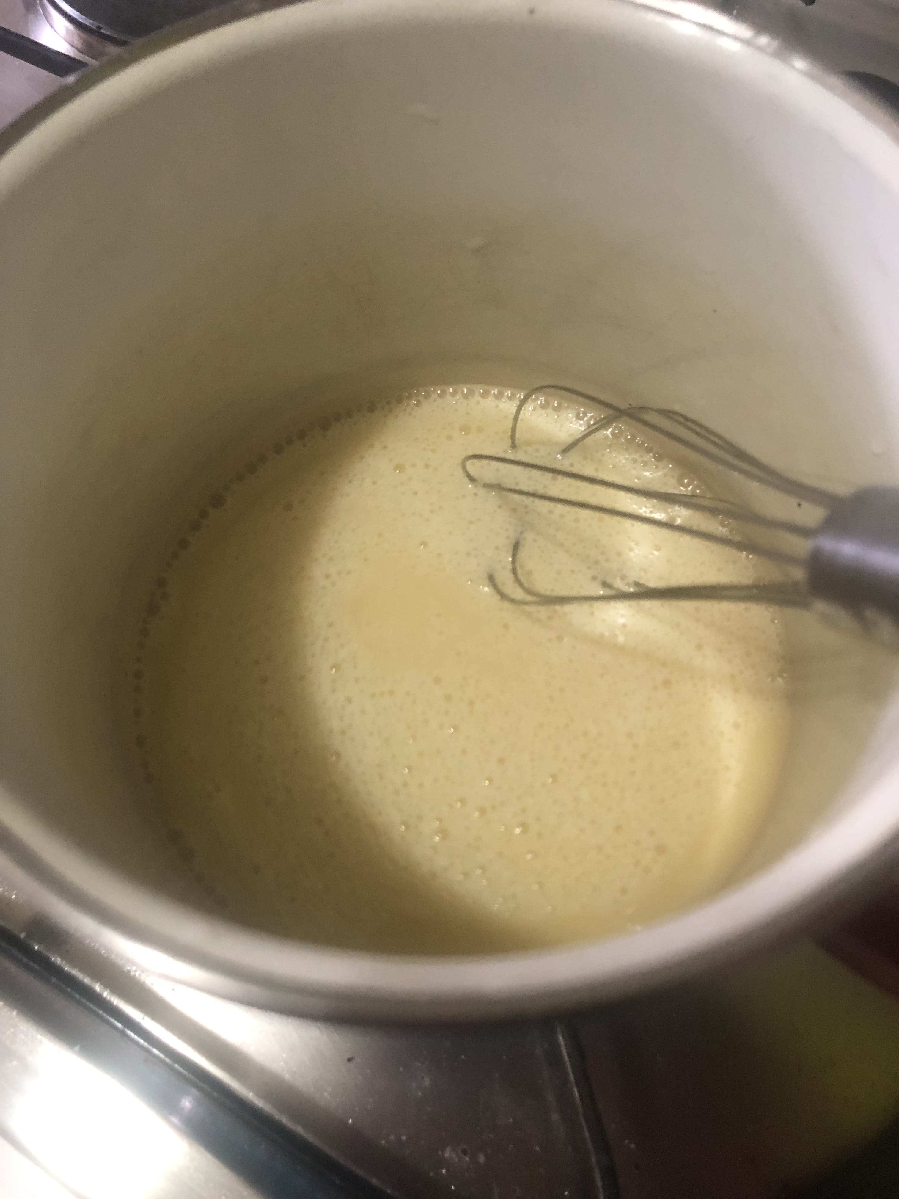 Prepara la crema: separa un poco de bebida vegetal y disuelve la maicena. Tritura la piña con el resto de bebida y el eritritol hasta obtener una crema fina (pasa por el colador). Lleva al fuego y cuando empiece a hervir agrega la maicena. Remueve hasta que empiece a espesar. Retira del fuego, vierte en un recipiente de cristal y cubre con film para que no se reseque. Cuando enfríe por completo lleva al frigo unas horas para que adquiera consistencia.
