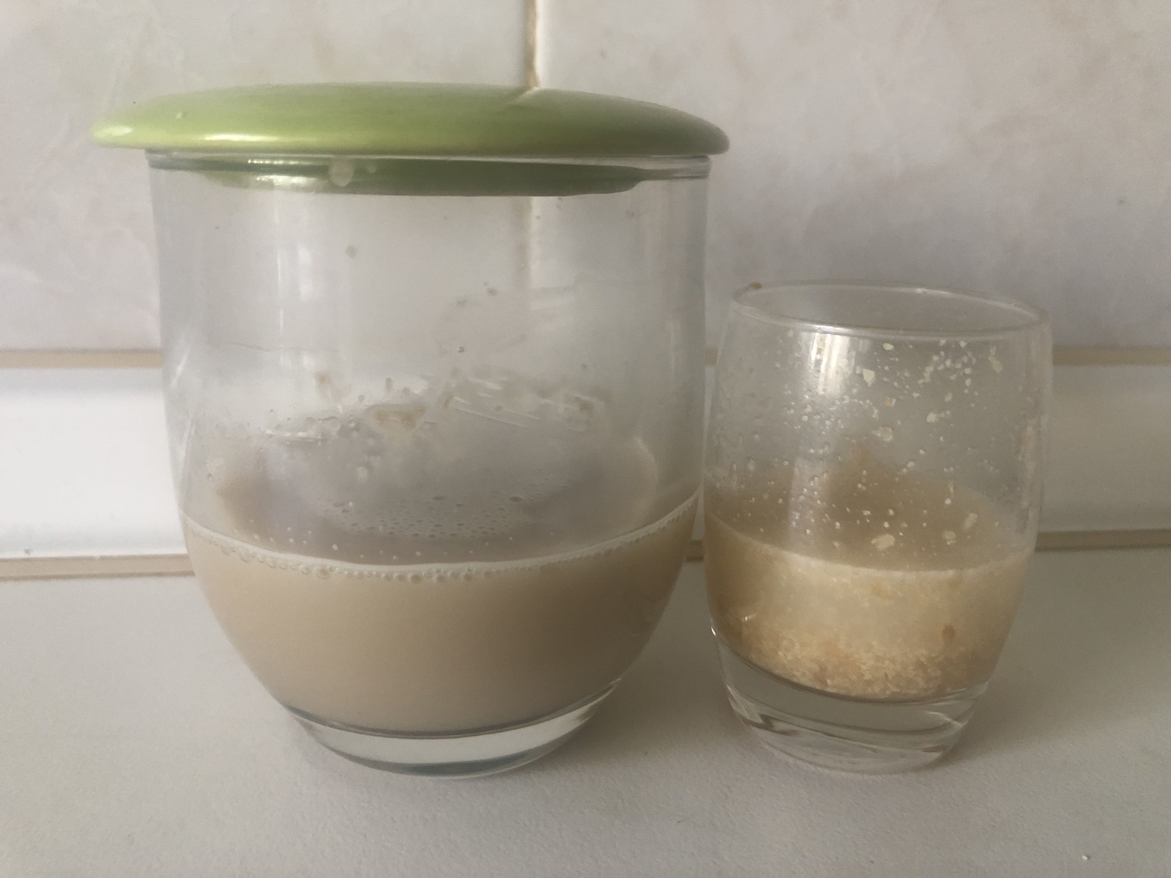 Disuelve la levadura en la bebida de arroz tibia, agrega el azúcar y deja fermentar hasta que doble volumen (¡súper importante!).