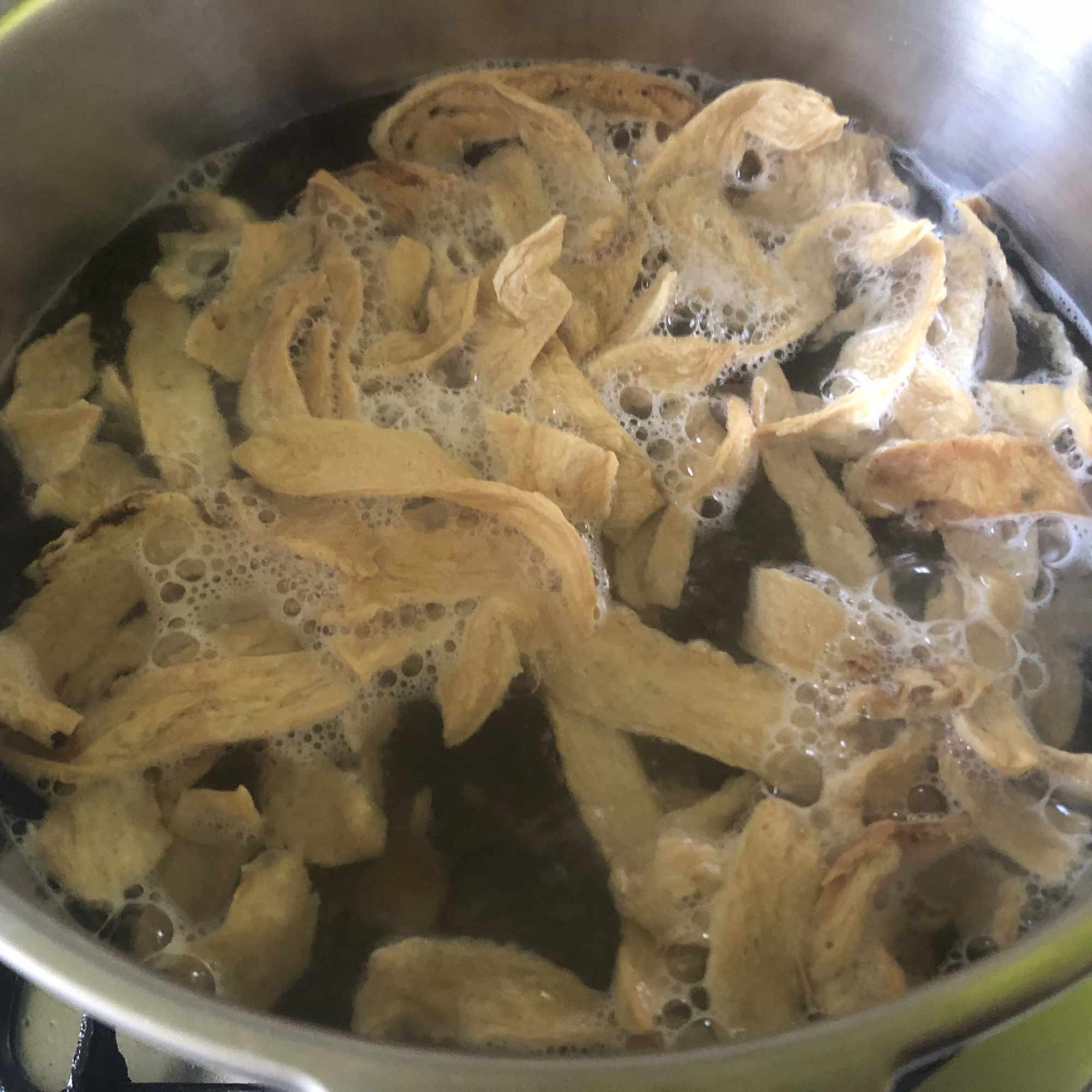 Hierve las sojalitas durante unos 20 minutos. Elimina el exceso de agua y reserva.