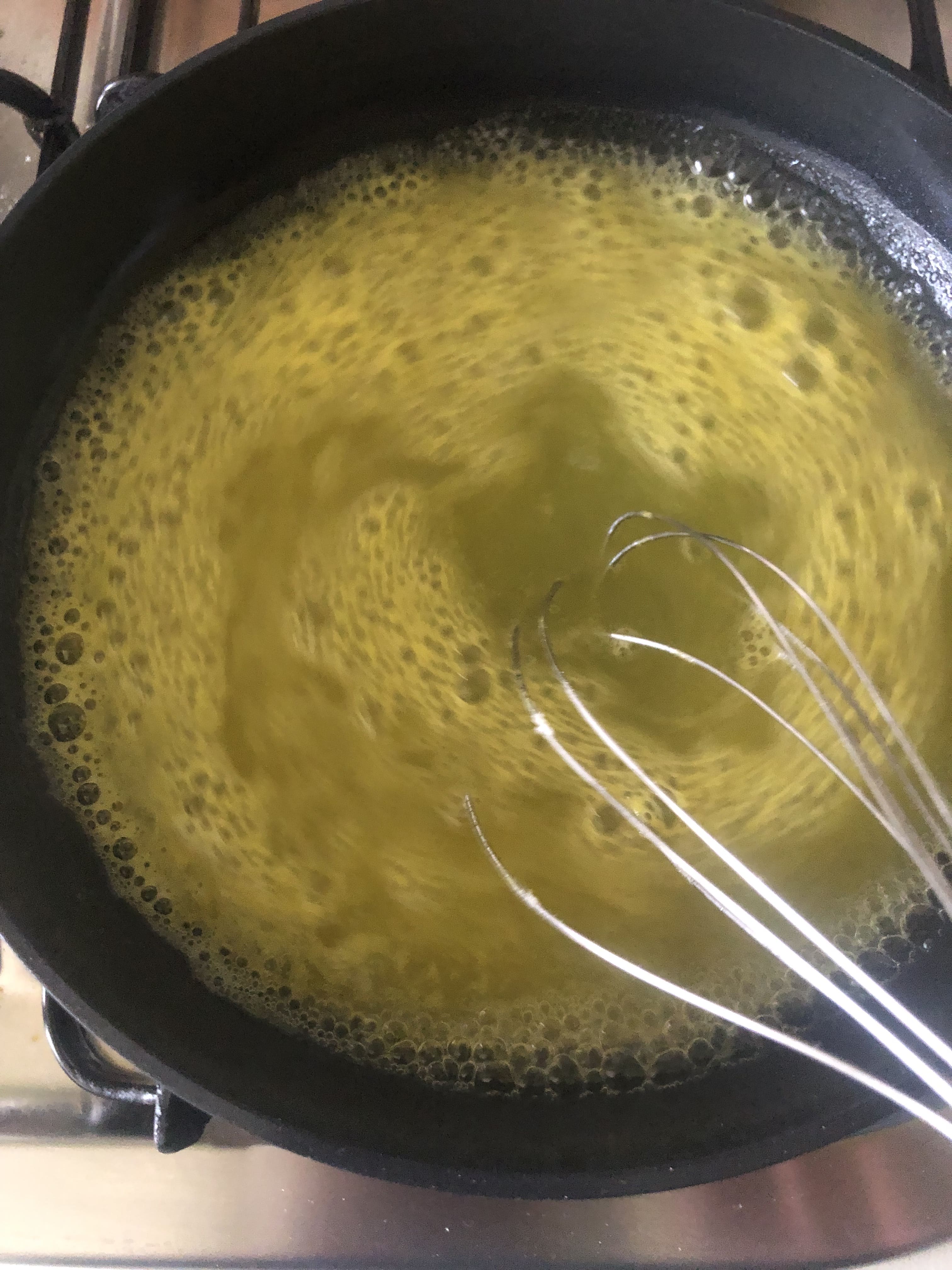 Sigue el mismo procedimiento con el zumo de piña. Deja atemperar un poco y vierte despacio sobre la anterior mezcla. Este paso es importante, ya que si lo echas caliente puedes deshacer la gelatina de coco. Vuelve a llevar al frigo otras dos horas.
