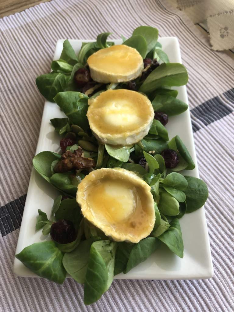 ENSALADA DE CANÓNIGOS Y RULO DE CABRA