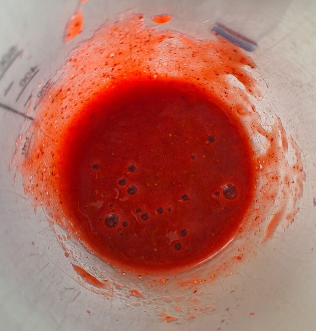 El relleno lo hice con nata vegetal, fresas y agar agar para darle consistencia. Si queréis utilizar gelatina debéis saber que la proporción es 3 hojas de gelatina = 1 gr de agar agar.