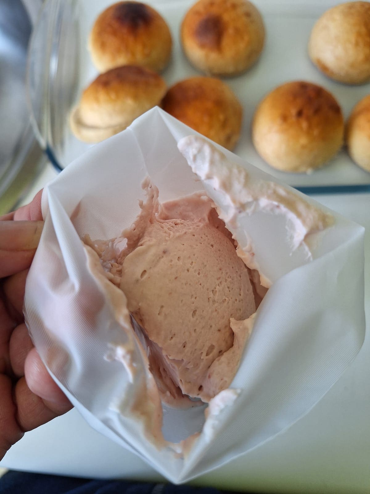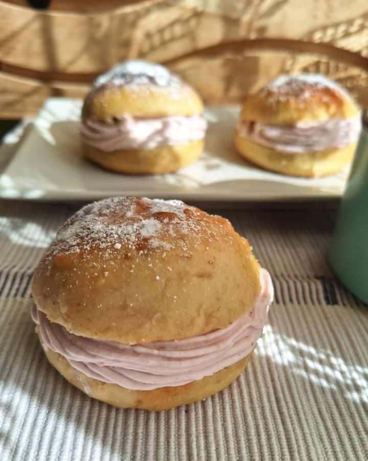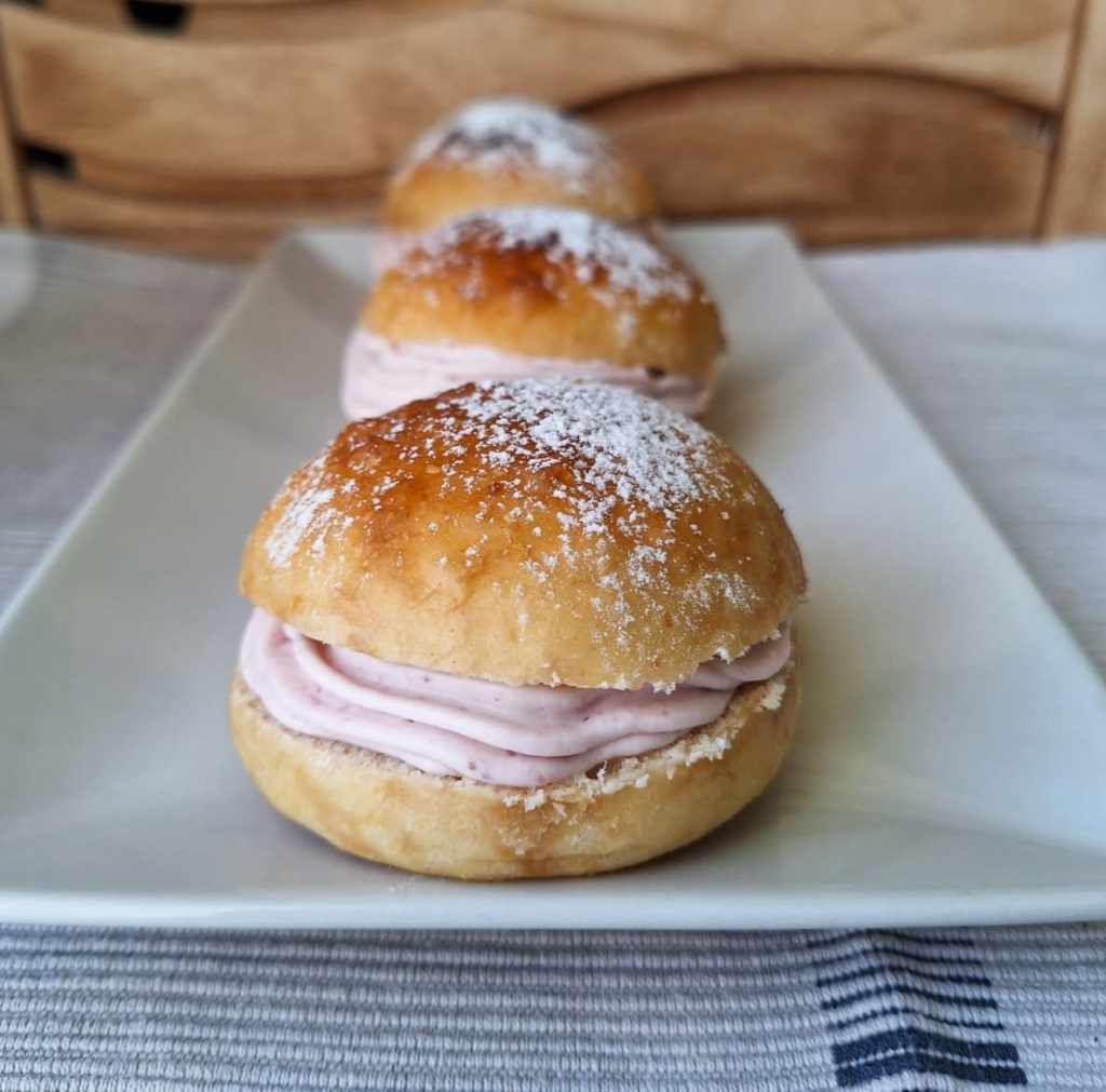 El domingo pasado mi querido Javier, de @cocinandoconhistorias, publicó unas bambas caseras, que me crearon tal antojo, que no he podido dejar de pensar en ellas hasta que las he hecho. Conocidas como Bambas, Berlinas o Cristinas, son unos bollitos pequeños de sabor dulce rellenos de una capa generosa de nata. Pura delicia para el paladar.