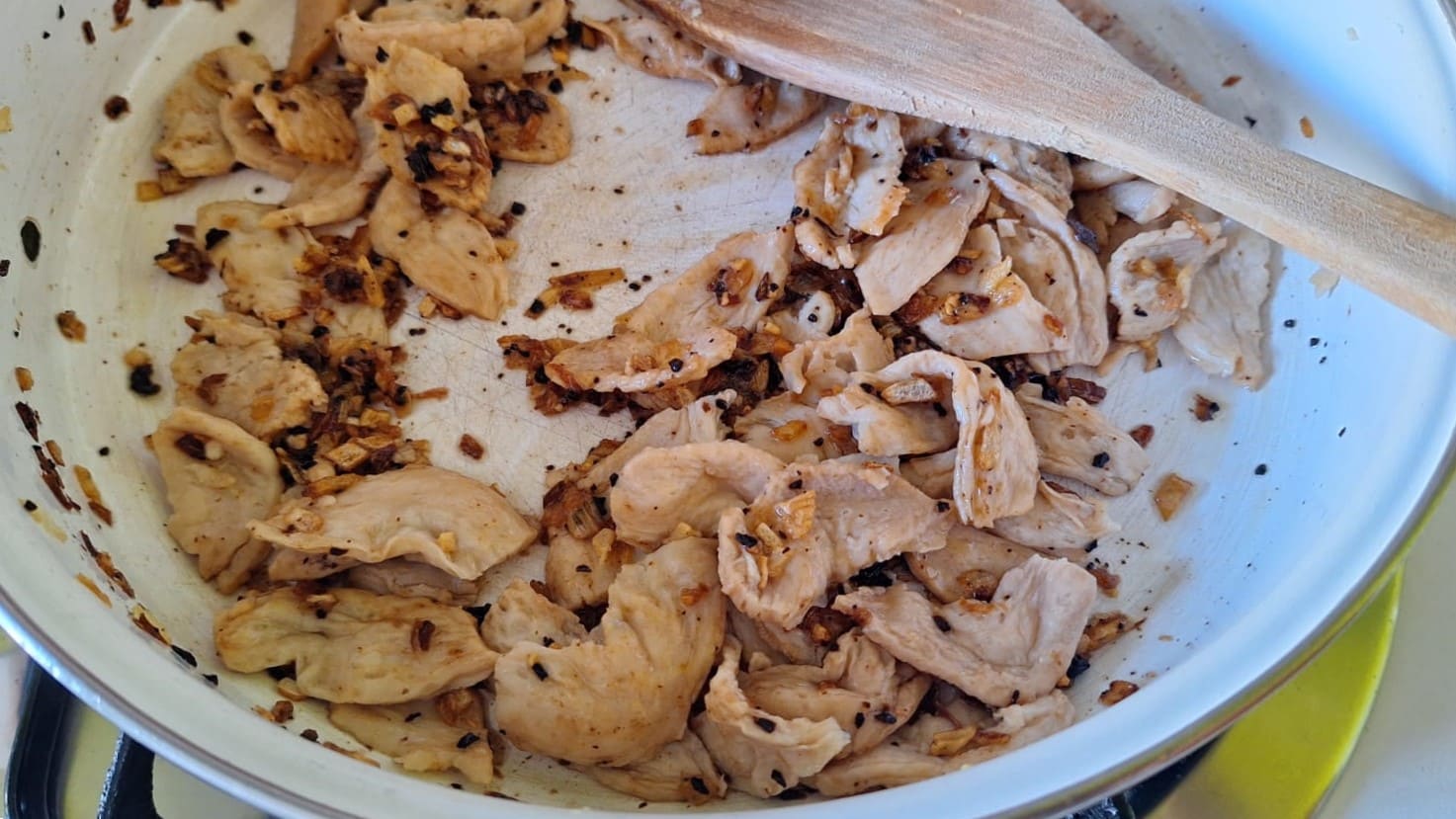Mezcla todo bien y agrega el vino. Cocina 5 minutos para que se evapore el alcohol.