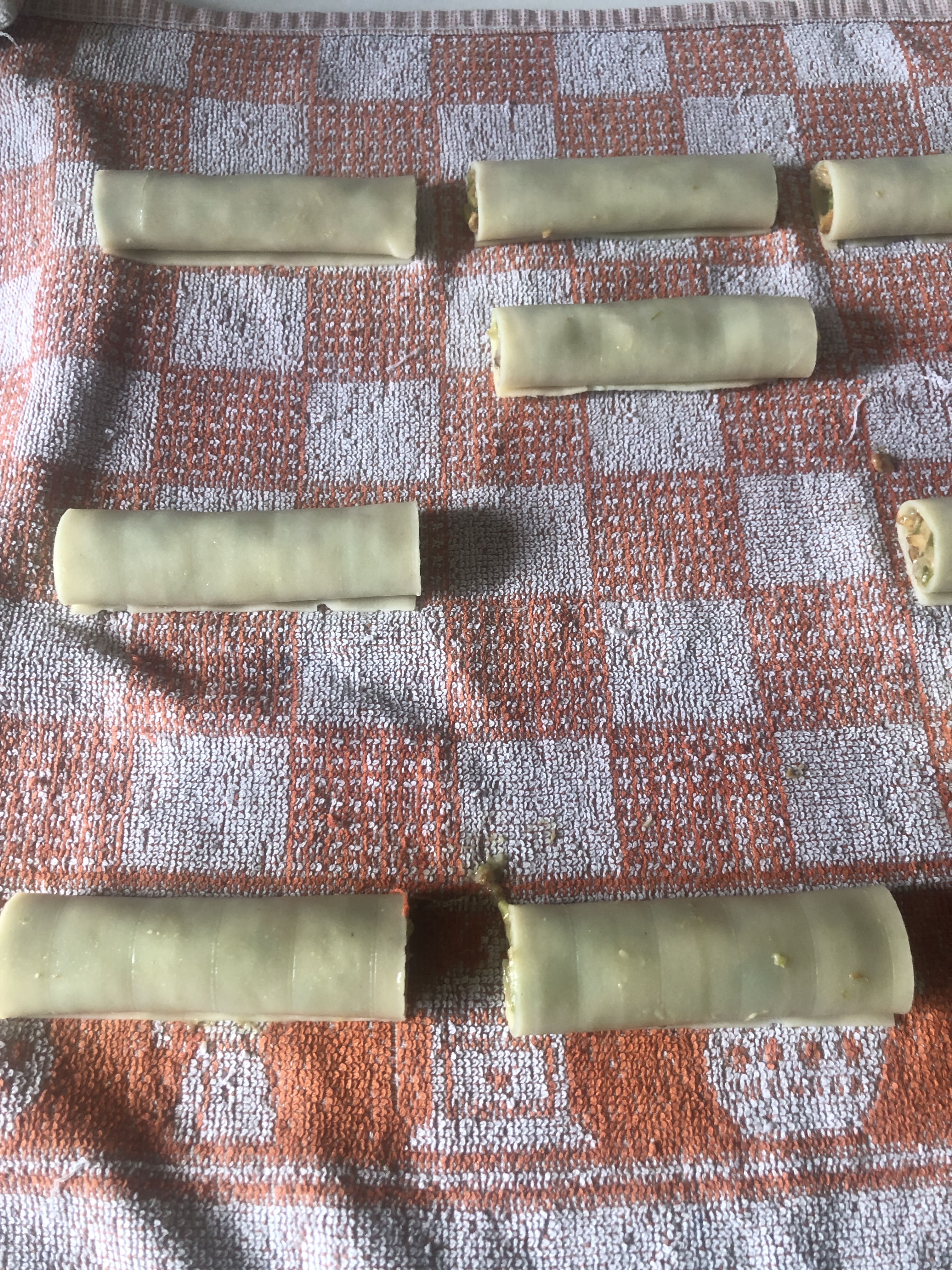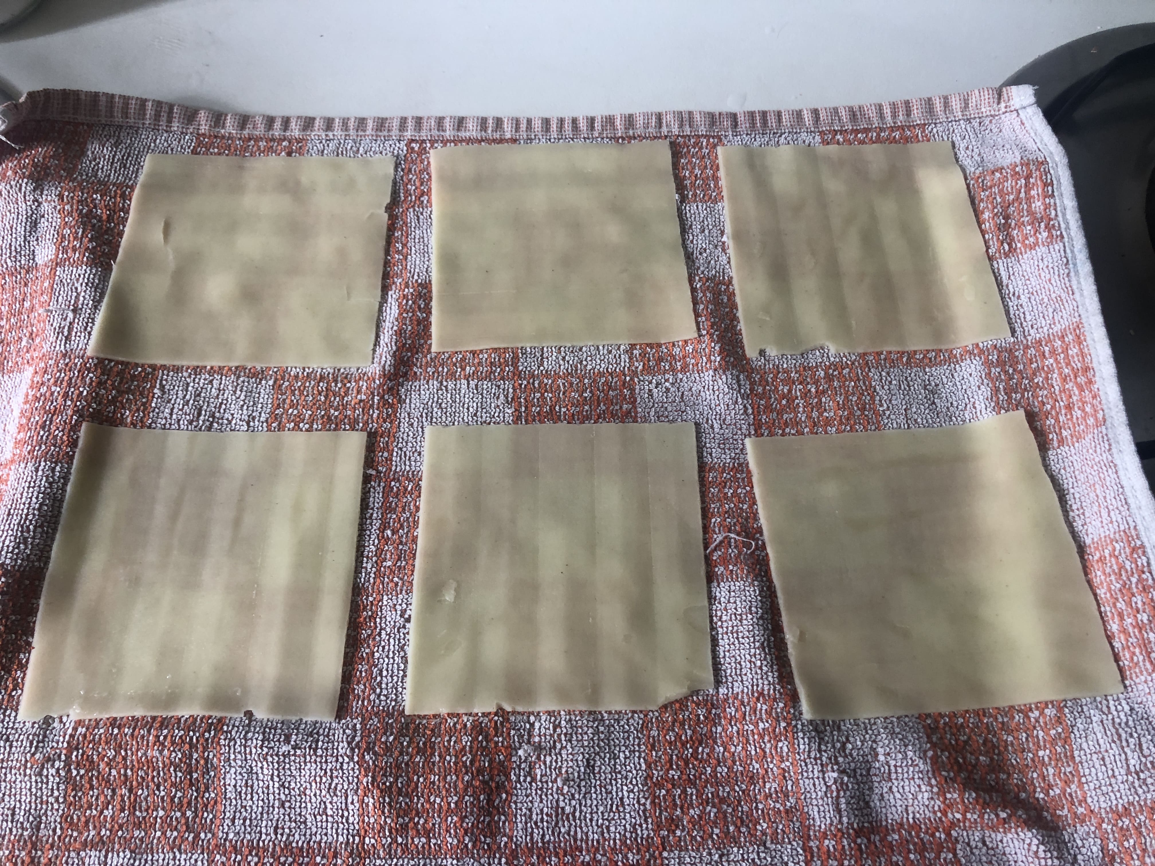Cuece las placas de pasta en agua hirviendo siguiendo instrucciones del fabricante. Enfría y coloca sobre un paño limpio y seca. Reparte el relleno y enrolla con cuidado.