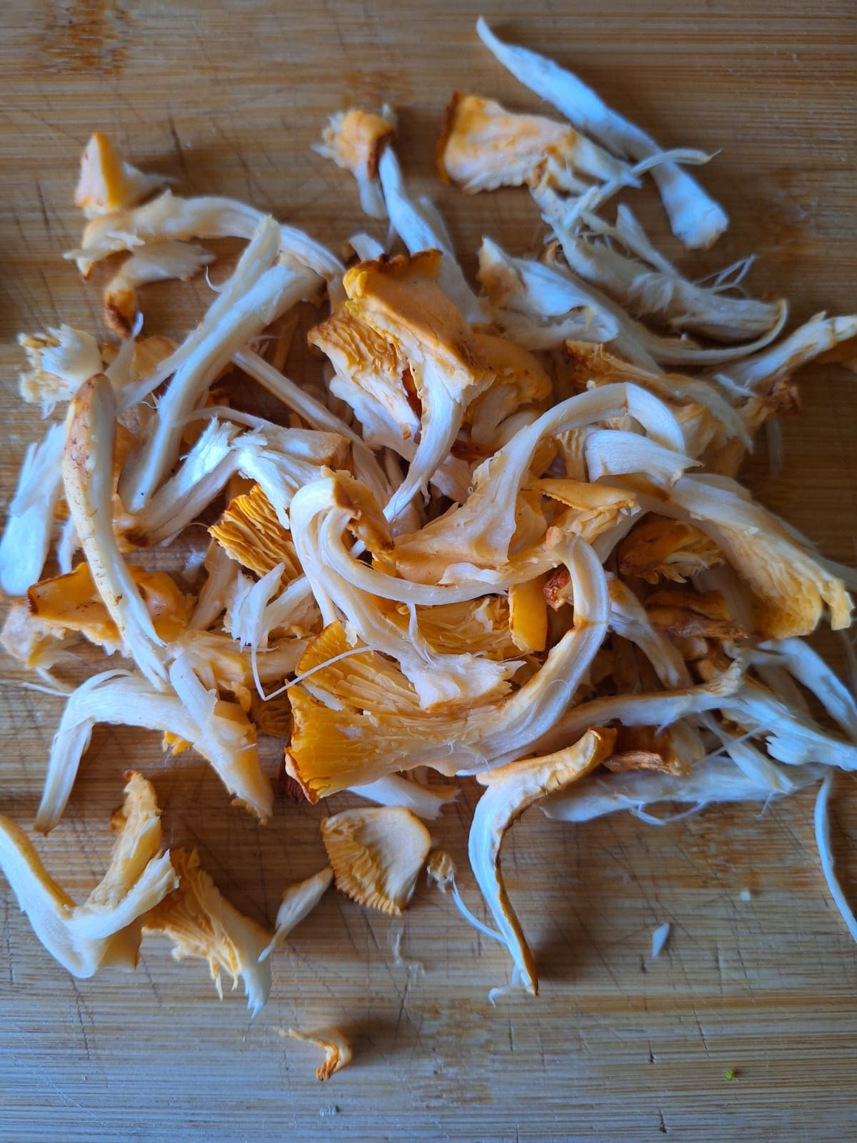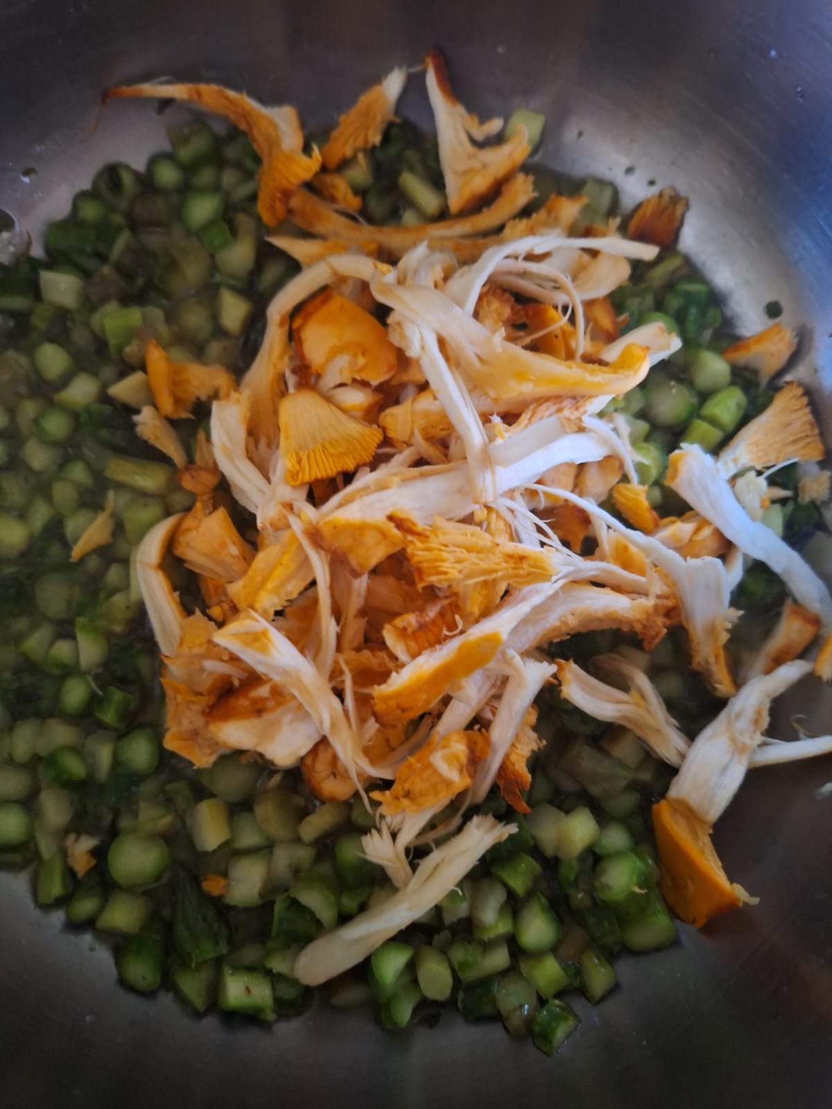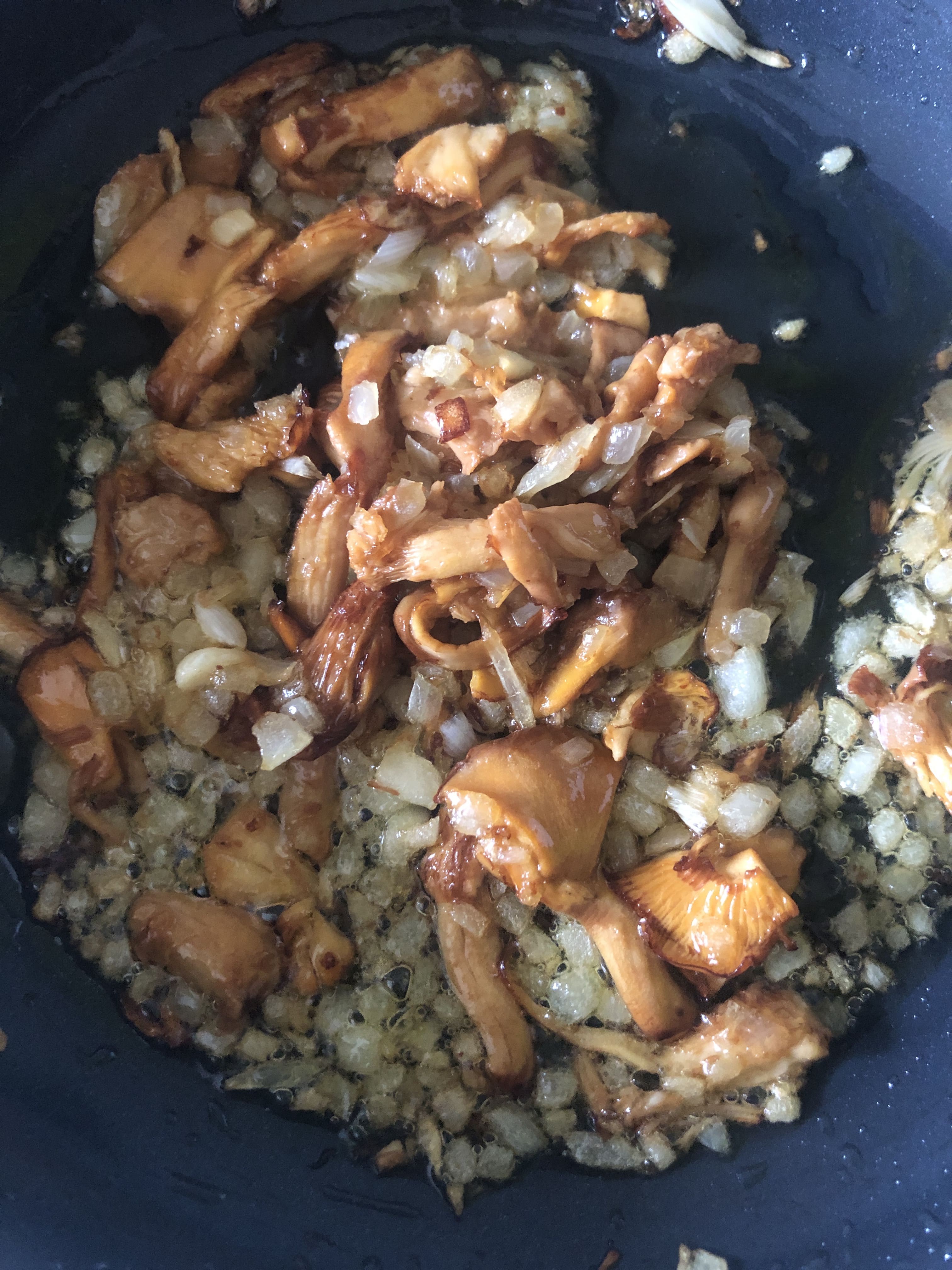 No sé si habéis probado las chantarelas, también conocidas como rebozuelos. Es una seta de primavera, de color amarillo, que crece en zona de robles. Yo no las había probado nunca, pero mi tía nos trajo unas cuantas y decidí darles salida de una forma creativa. Así que me lancé a la aventura y elaboré un plato sano, sabroso y delicioso, combinando estas fantásticas setas con los trigueros (mi alimento estrella de la temporada, sin duda).