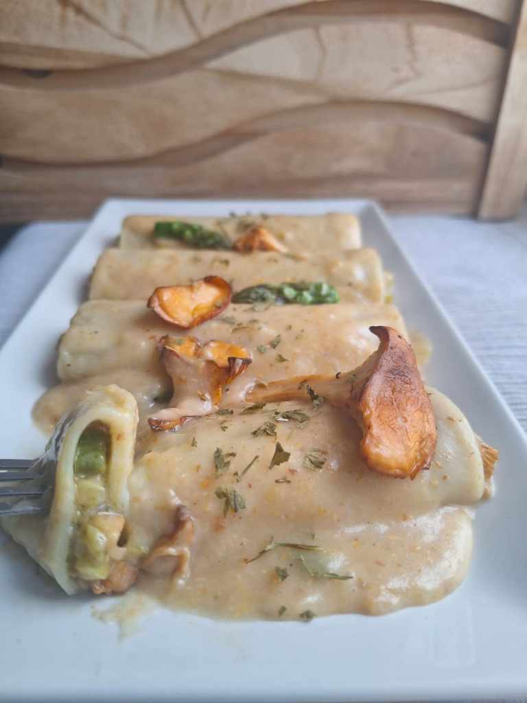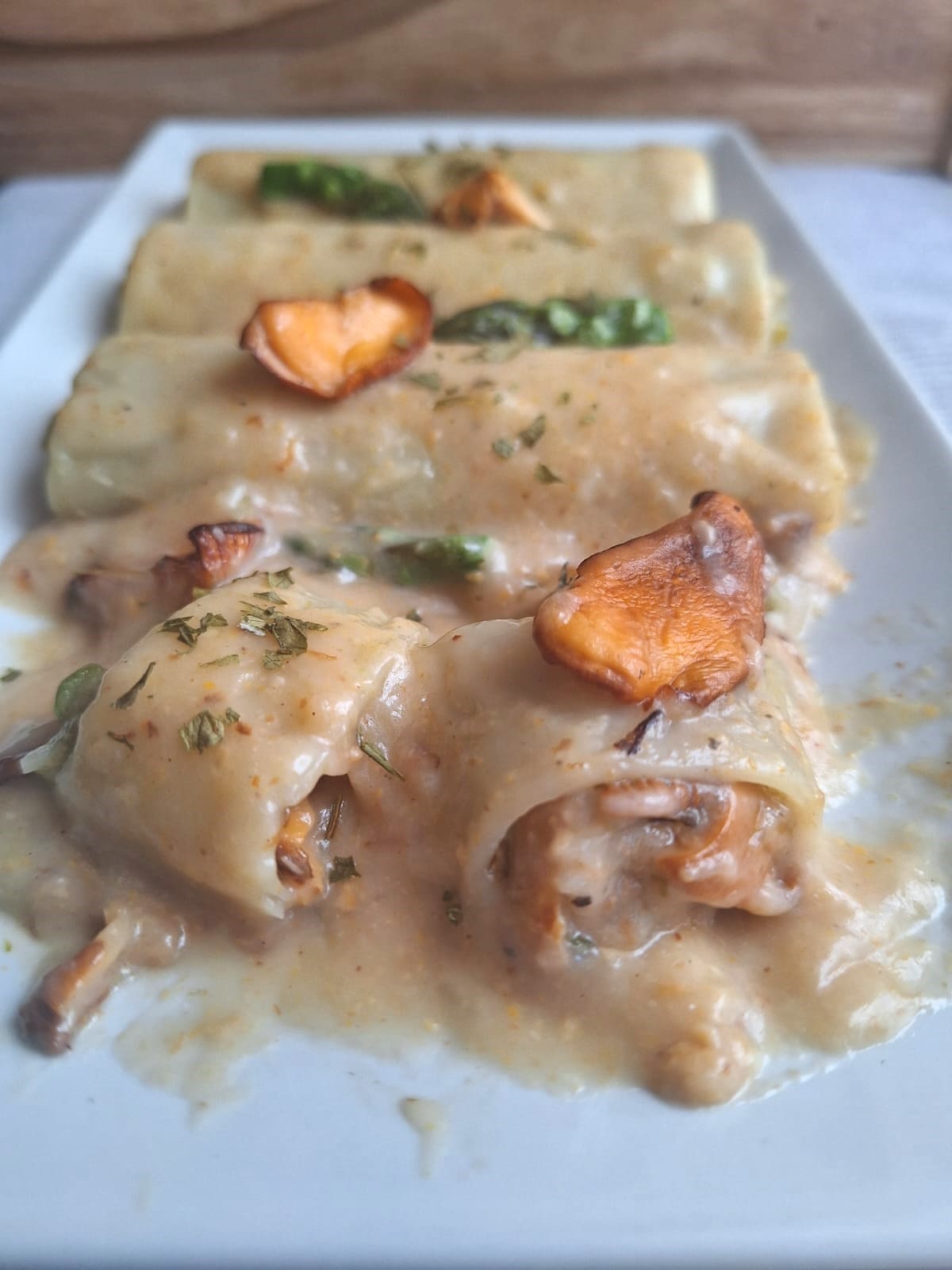 CANELONES DE TRIGUREOS Y CHANTARELA