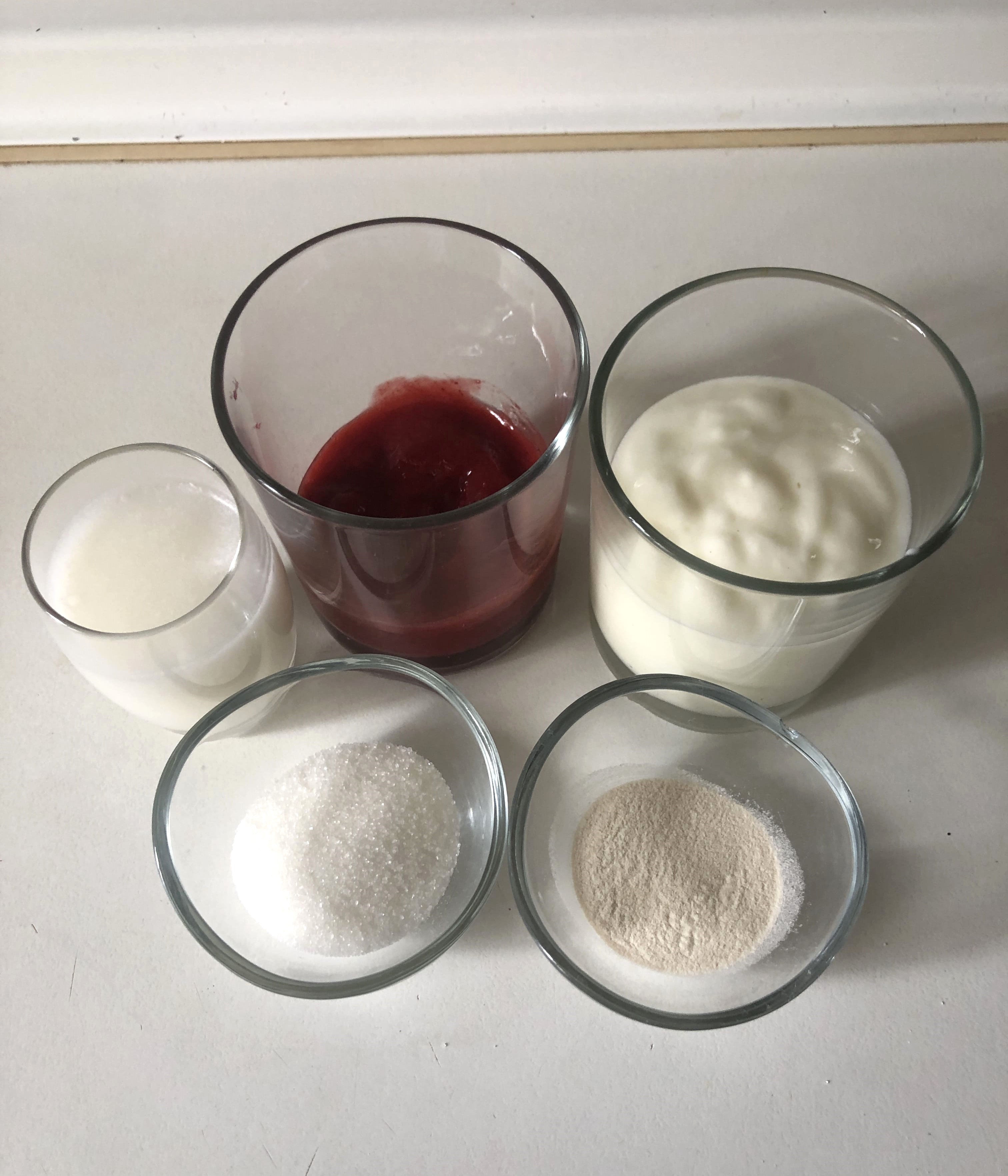 - 50 gr de puré de fresas (utiliza unos 70 gr de fresas frescas)