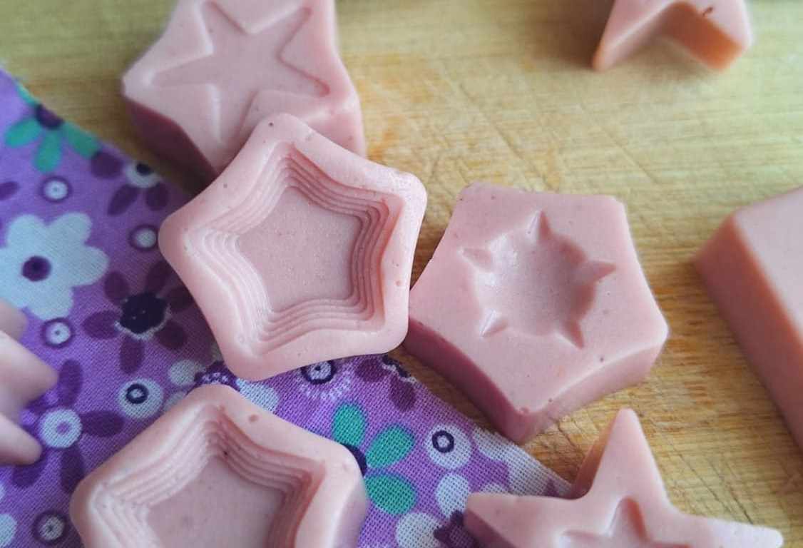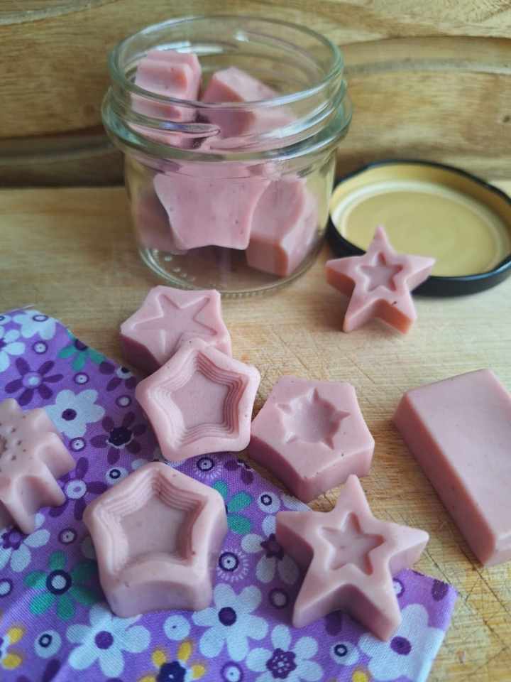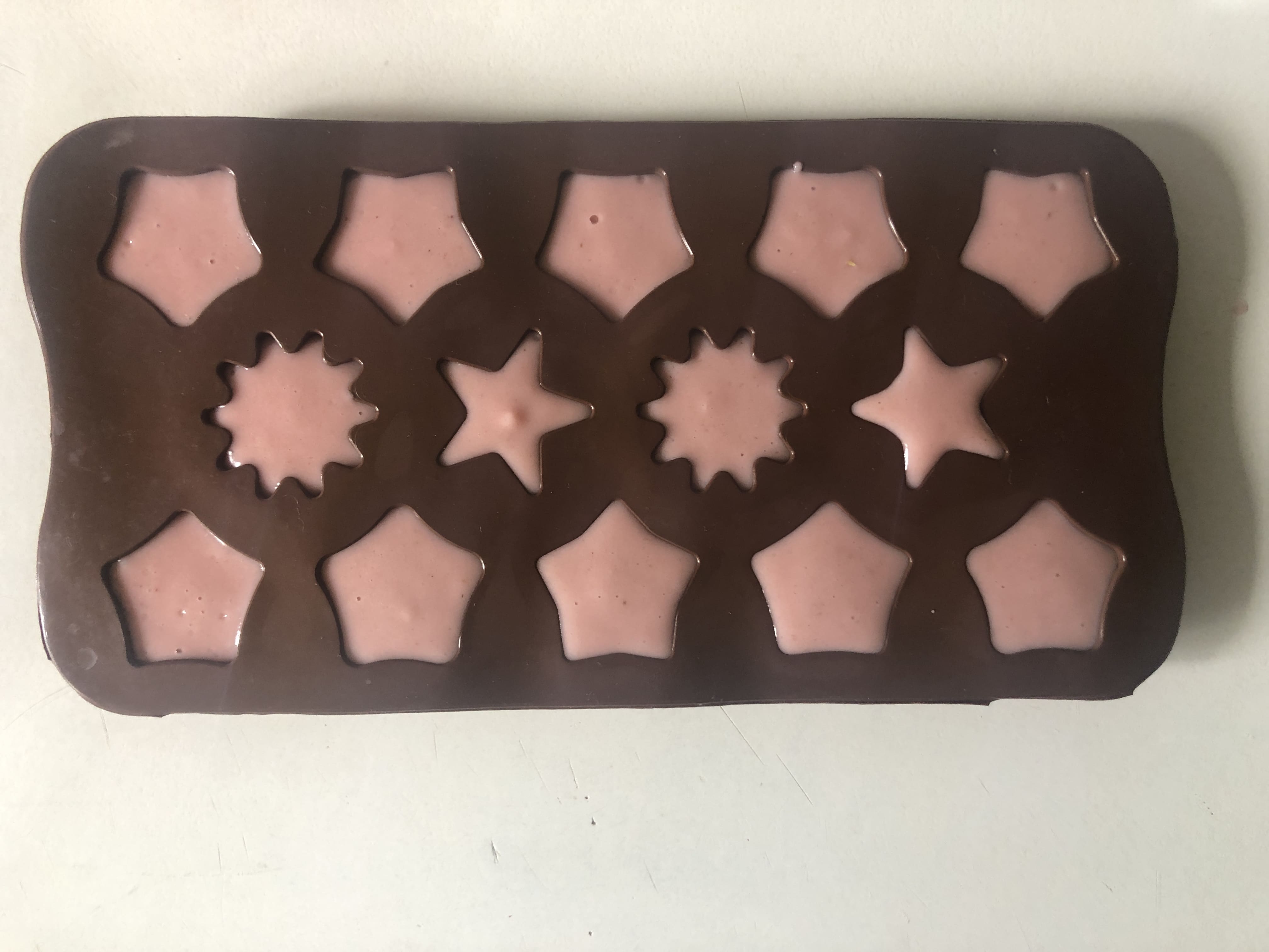 La receta se la vi publicada a mi compi @lisbet.sweets, que es tan dulce como su nombre y tiene un perfil precioso con muchas recetas de goloseo y también saladas. Decidí versionarla y hacer mi propia alternativa vegana. He de deciros que la textura no es como la de las gominolas comerciales. No sé si esto se debe al yogur o a la cantidad de agar agar que he utilizado. No he seguido las proporciones exactas de agar que se recomiendan para texturas duras, pero sí os puedo decir que las chuches tienen una consistencia perfecta para desmoldarlas sin que se rompan y, a la vez, son blanditas al morderlas. Creo que si se hacen únicamente con puré de fresa o con zumo de otra fruta el resultado puede ser más similar al de las gominolas que todas conocemos. Pero, en definitiva y personalmente, creo que este resultado es perfecto y el saborcito que le da el yogur bien merece la pena. Os muestro el resultado y vosotras decidís.