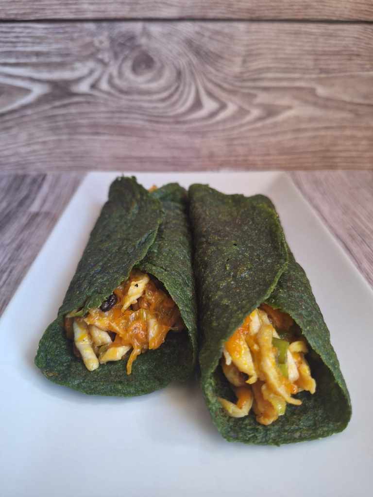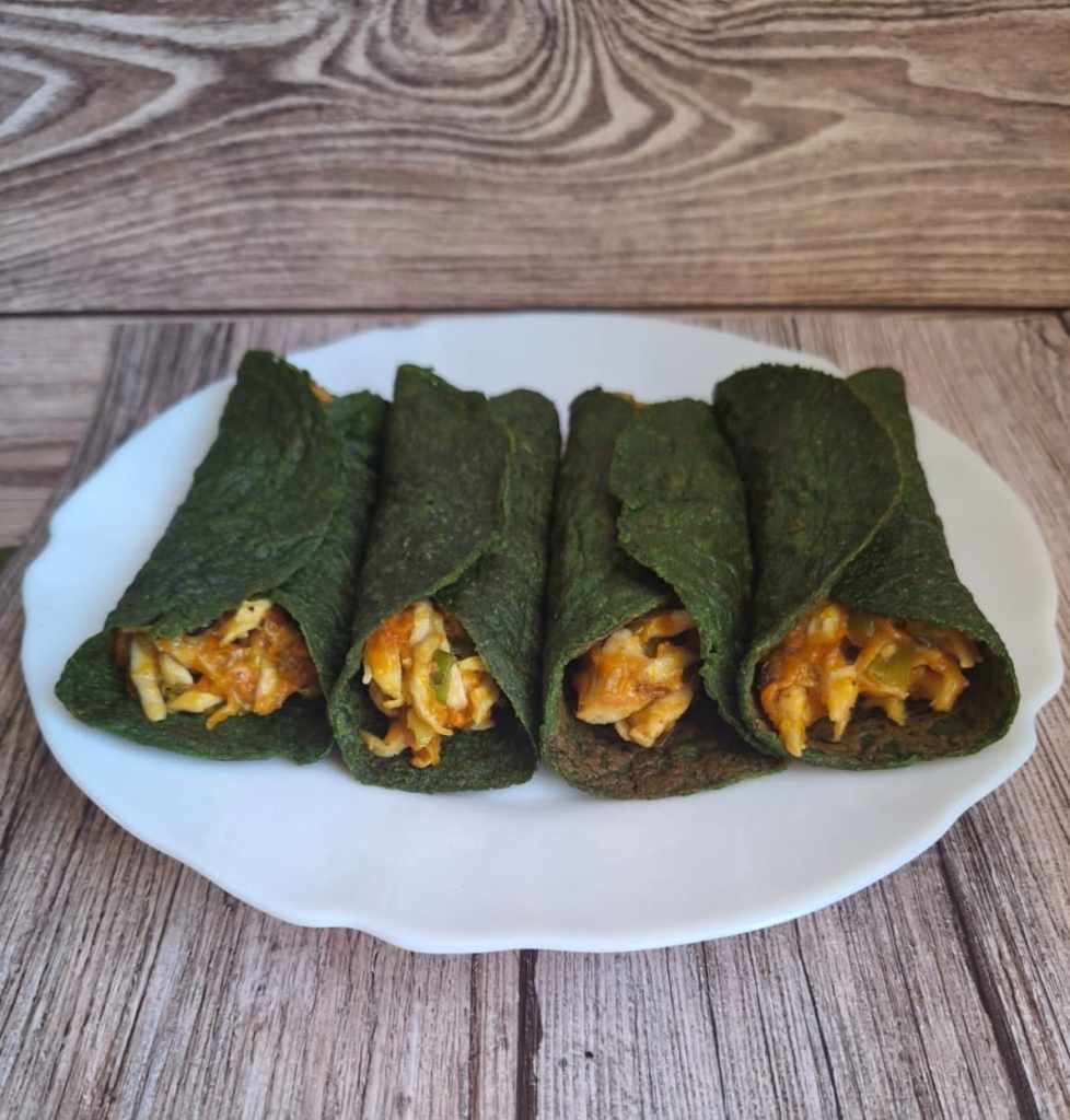 CREPES DE ESPINACA RELLENAS DE POLLO Y VERDURAS