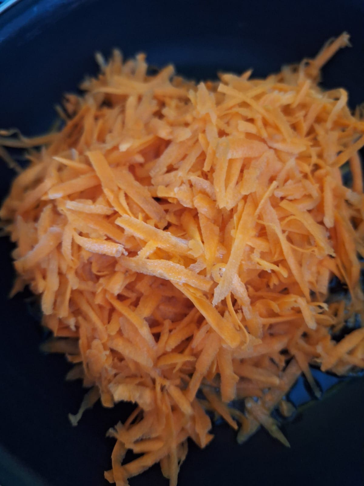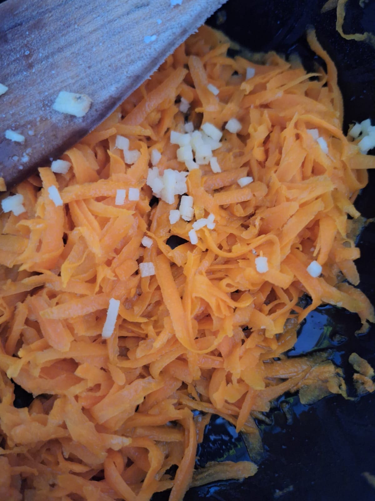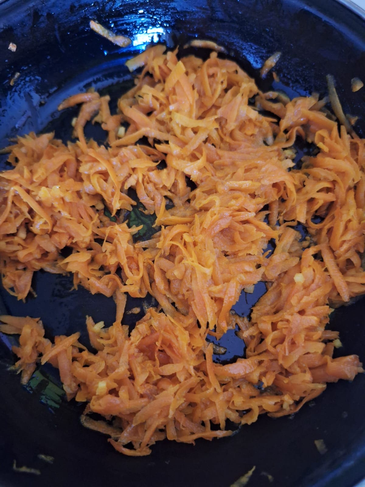 Ralla la zanahoria y el jengibre y pocha a fuego mínimo. Deja atemperar.