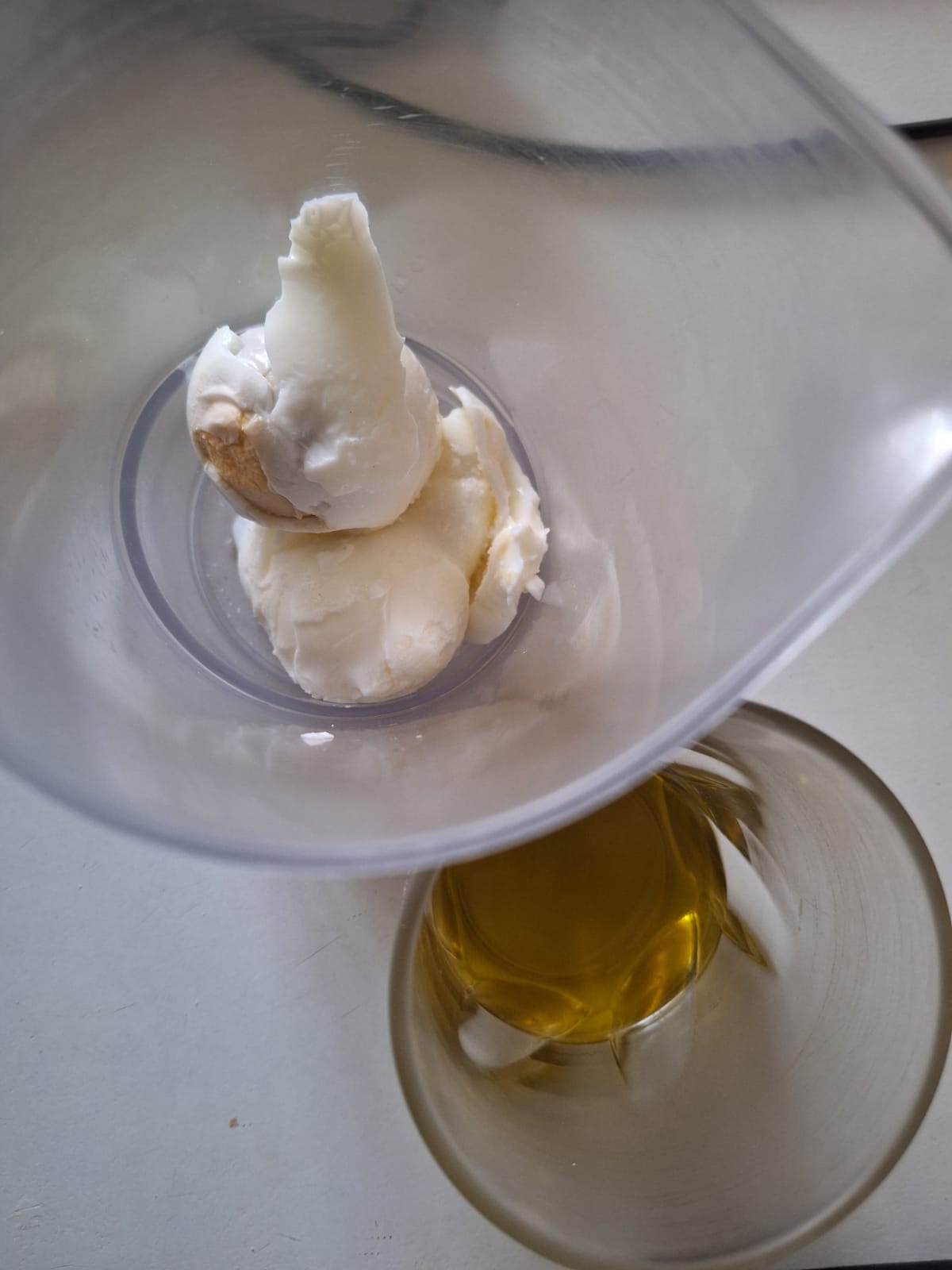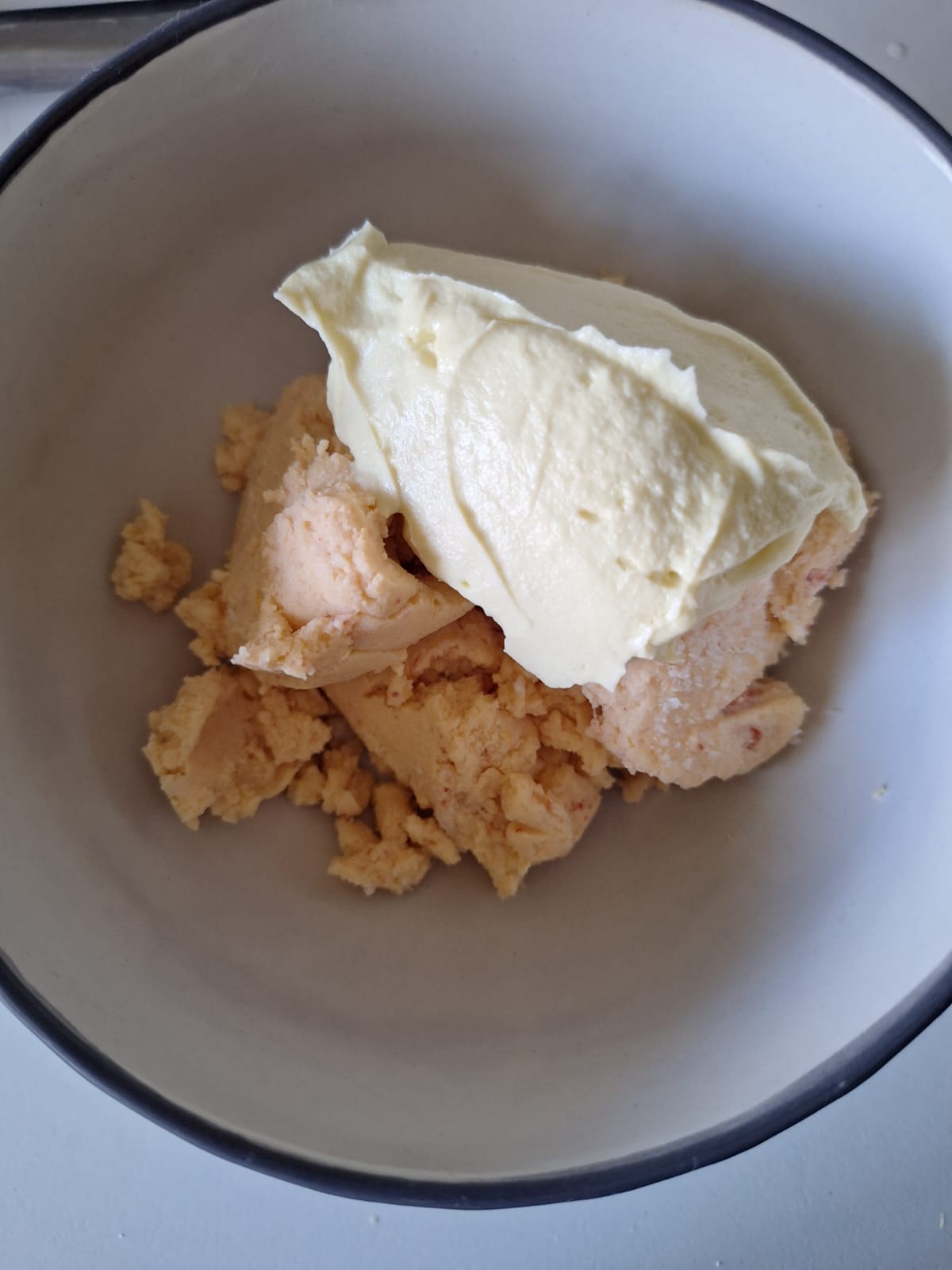 En cuanto a la mayonesa, la he hecho con huevo cocido y el resultado me ha gustado mucho. Aparte de que no se corta (como puede ocurrir con una mayonesa normal), le ha dado más consistencia a la receta.