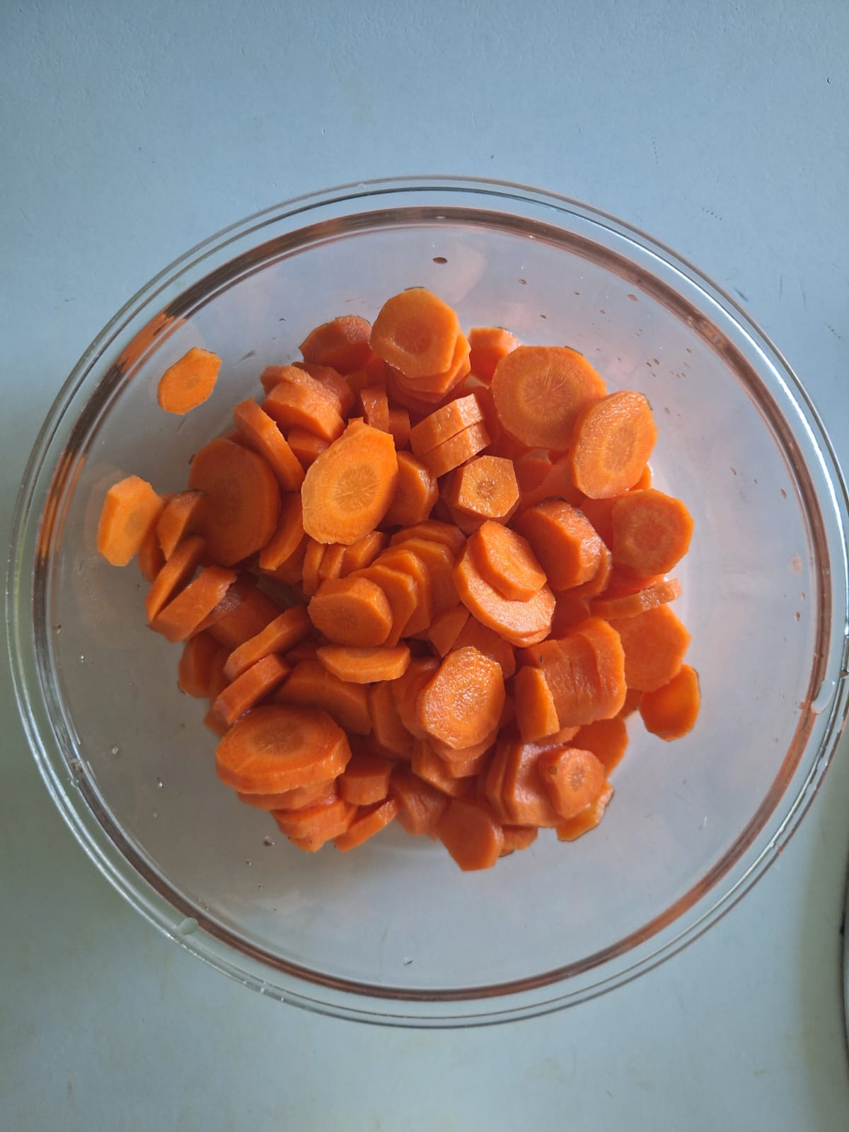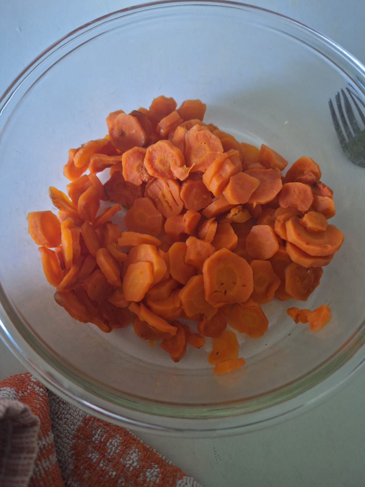 Pela las zanahorias y corta en rodajas finas. Coloca en un recipiente apto para microondas con un poco de agua, cubre y cocina unos 15-20 minutos (hasta que estén tiernas). Destapa con cuidado, retira el agua si hubiera y tritura con una batidora. Sazona y agrega las especias.