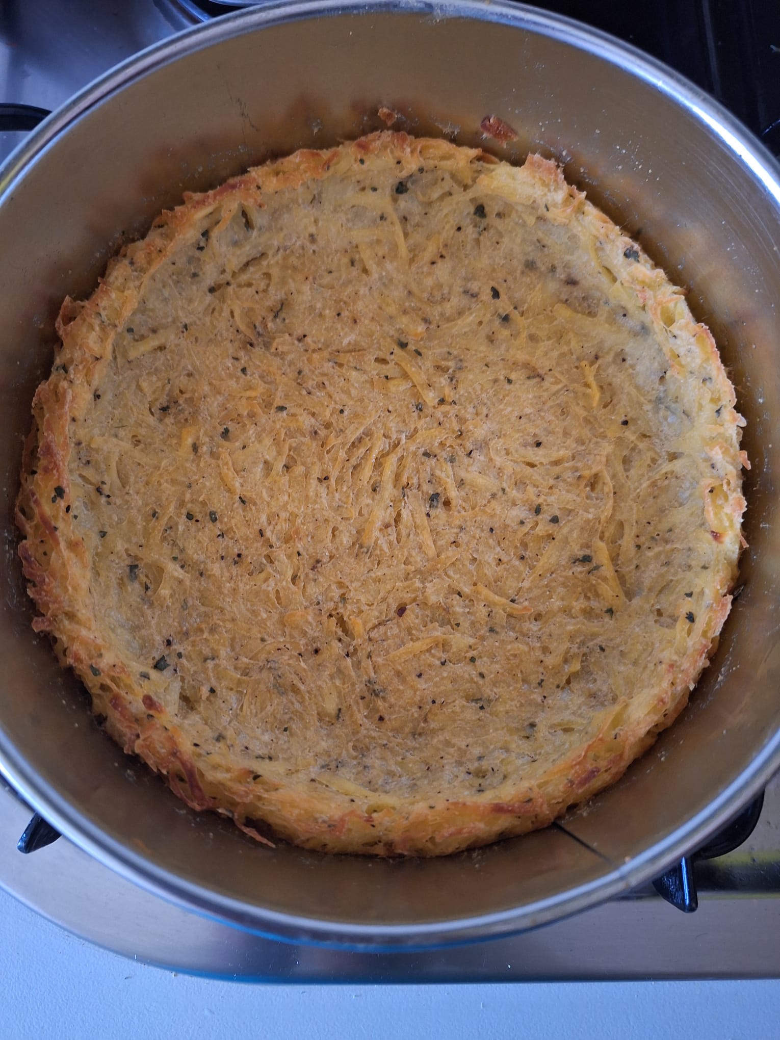 Esta tarta con base de patata queda muy rica y es una alternativa perfecta si tienes intolerancia al gluten o a la proteína del huevo, pero también os digo que es una receta para hacer y comer. Si la dejáis para el día siguiente la patata se habrá humedecido, pero bueno, nada que no ocurra también con el hojaldre. Os dejo una muestra y os animo a prepararla. !Buen provecho!