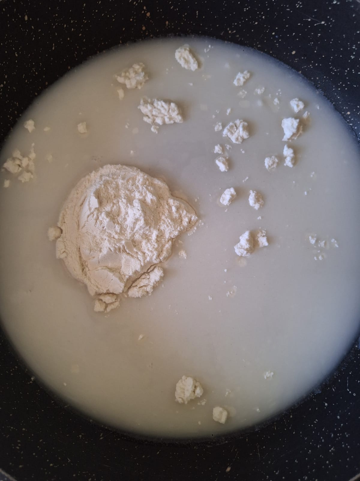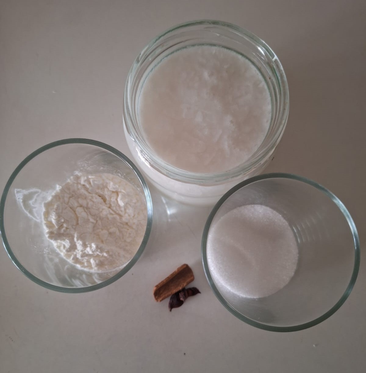 - Leche de coco casera (750 ml de agua + 70 gr de coco rallado)