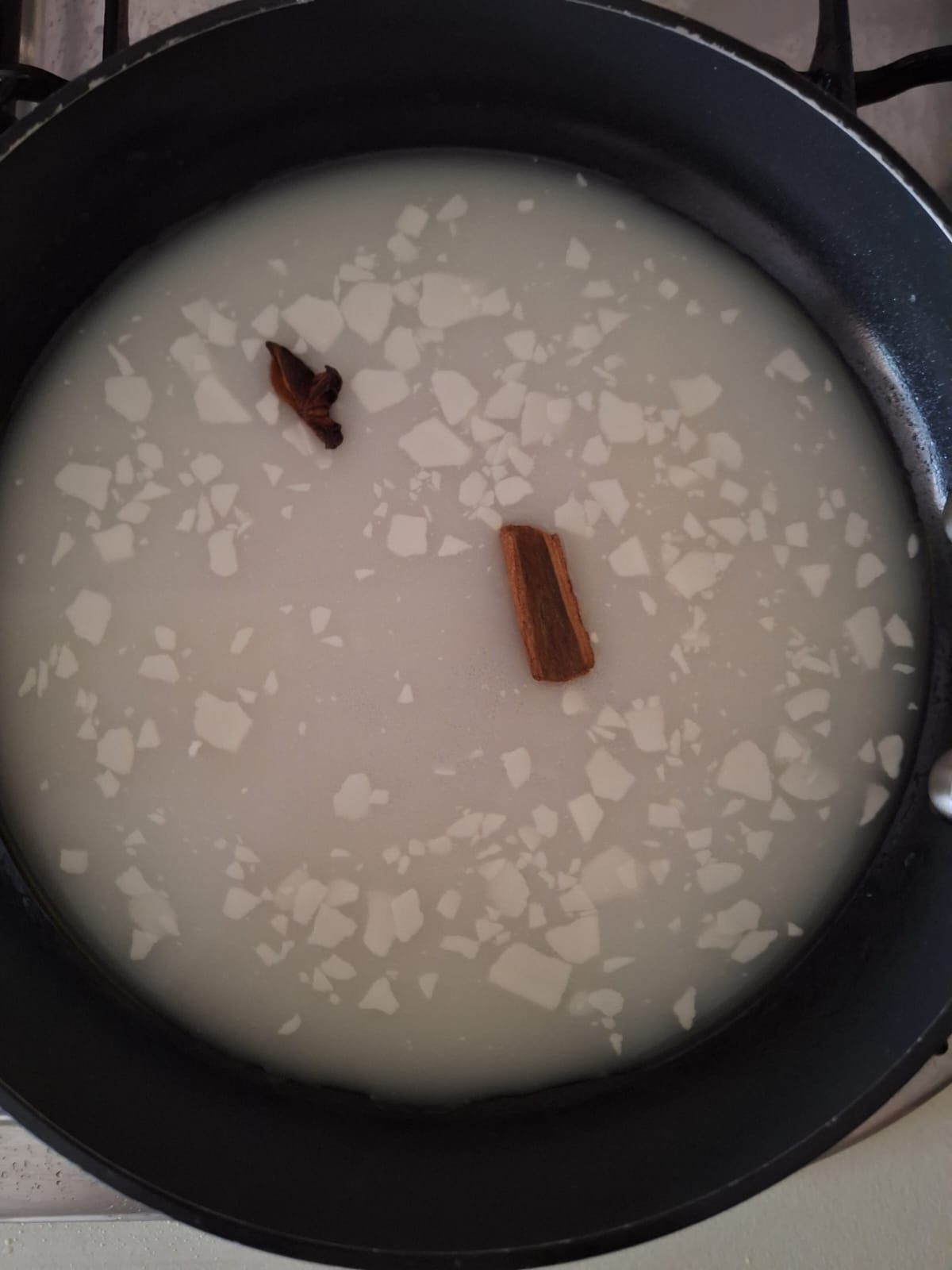 Por otra parte, decidí especiar la leche con canela y anís estrellado para darle un puntito de sabor. No hace falta añadir demasiado, basta con notar ese toque sutil. Pero podéis hacerla perfectamente sin especias.