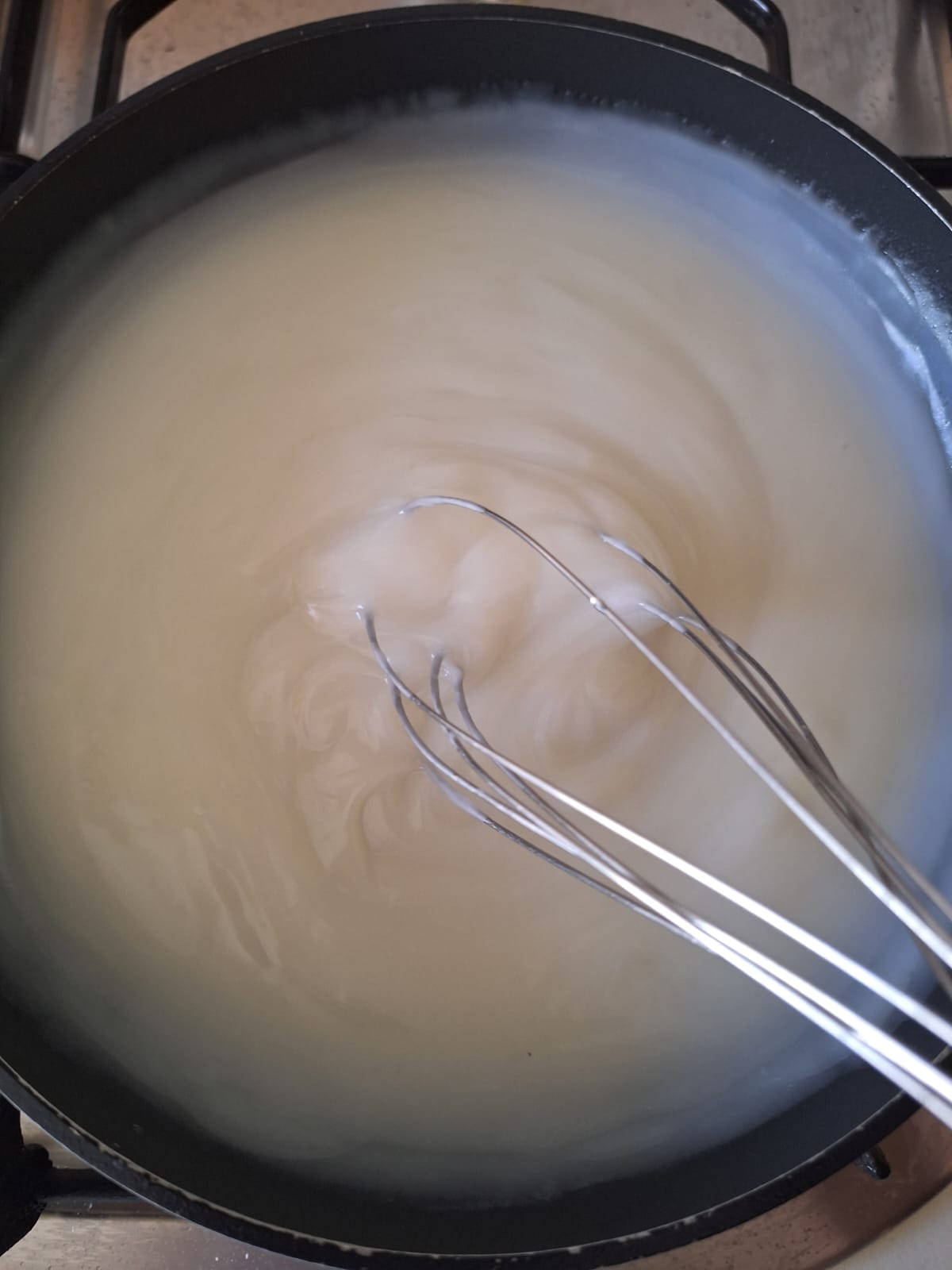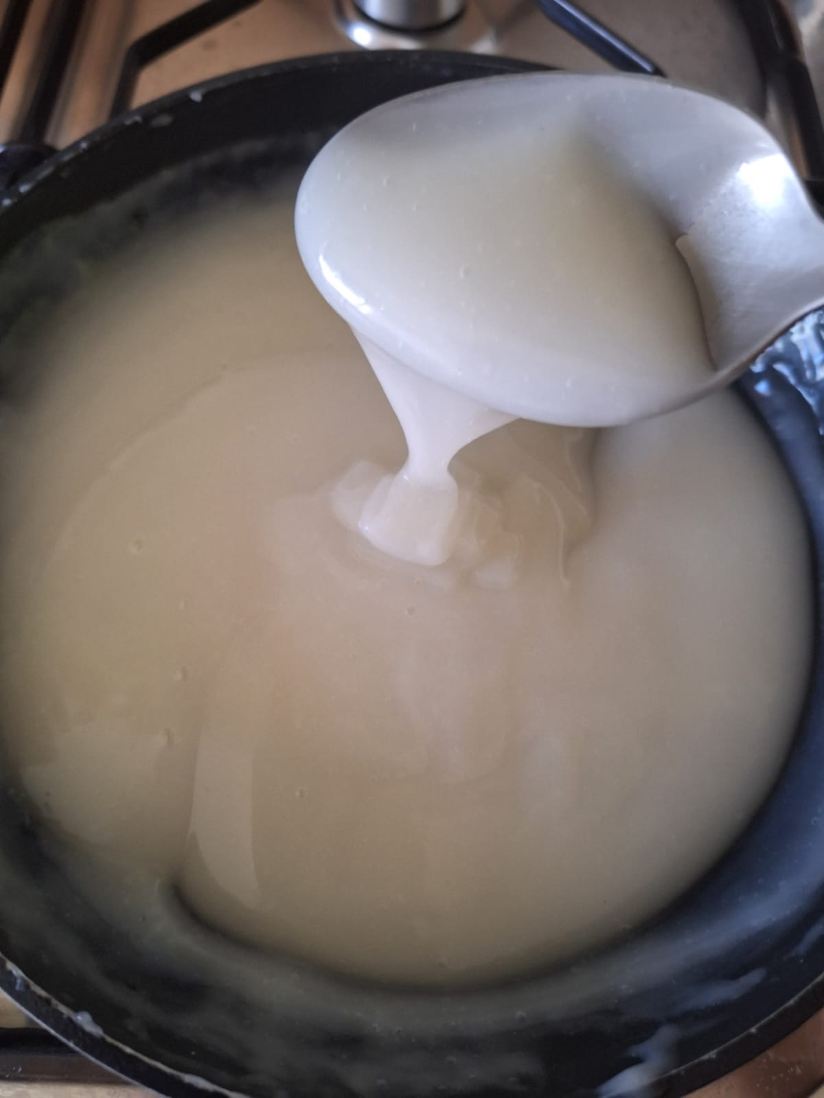 Calienta la leche, agrega la canela y el anís y deja infusionar unos 15 minutos. Retira las especias. Vierte en una sartén, agrega el eritritol y la harina de arroz y cocina a fuego bajo hasta que espese.