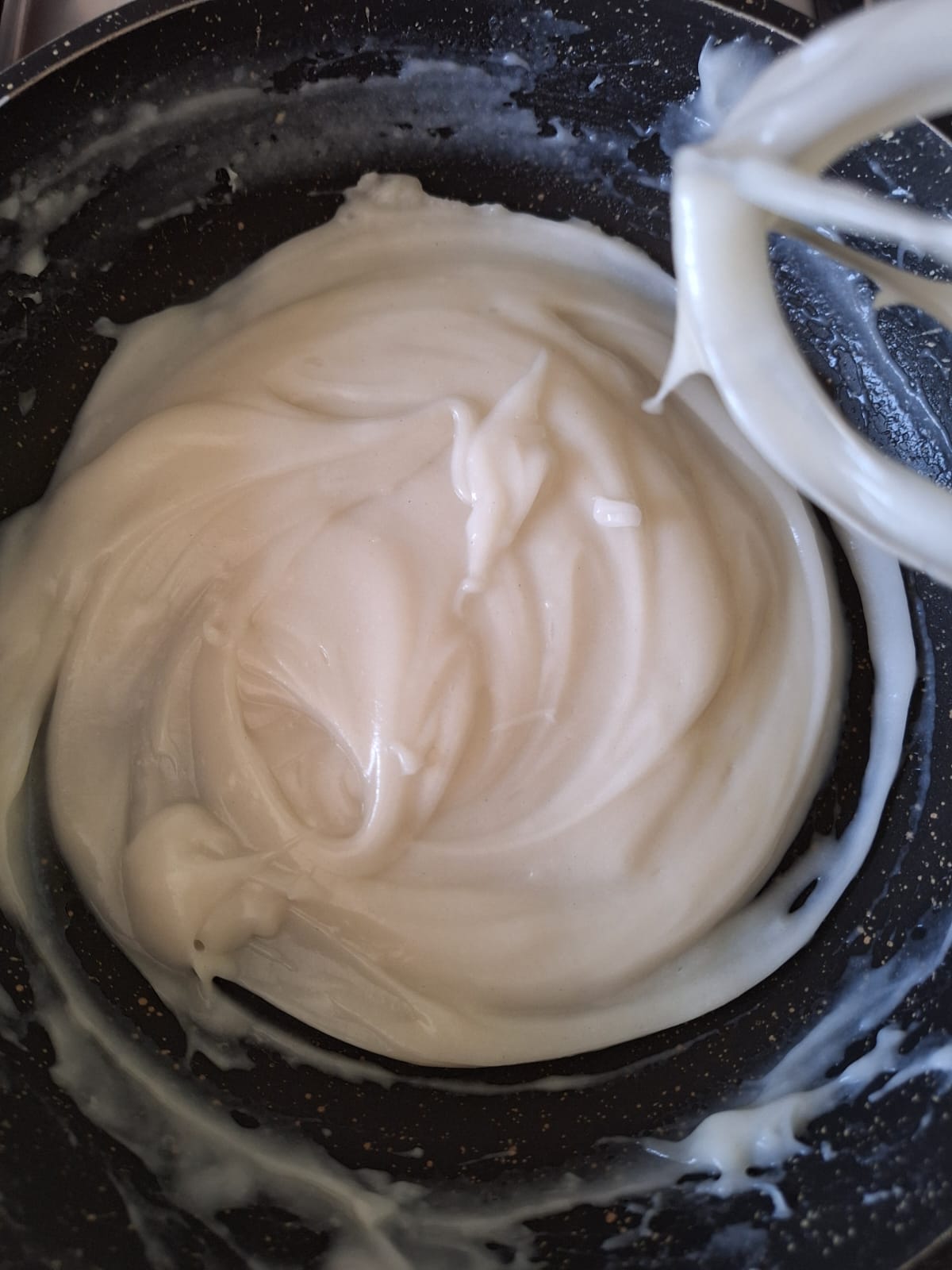Para espesar la crema se utiliza harina de arroz. Podéis hacerla fácilmente en casa, triturando los granos con un molinillo de café y tamizándola después para obtener una textura más fina. En caso de no tener harina de arroz podéis utilizar maicena, pero en este caso os recomiendo reducir la cantidad a 20 gr para que no quede tan sólida. Tampoco pasa nada si le echáis 30 gr, quedará una textura más consistente y con menos cantidad, más cremosa. Lo dejo a vuestra elección.