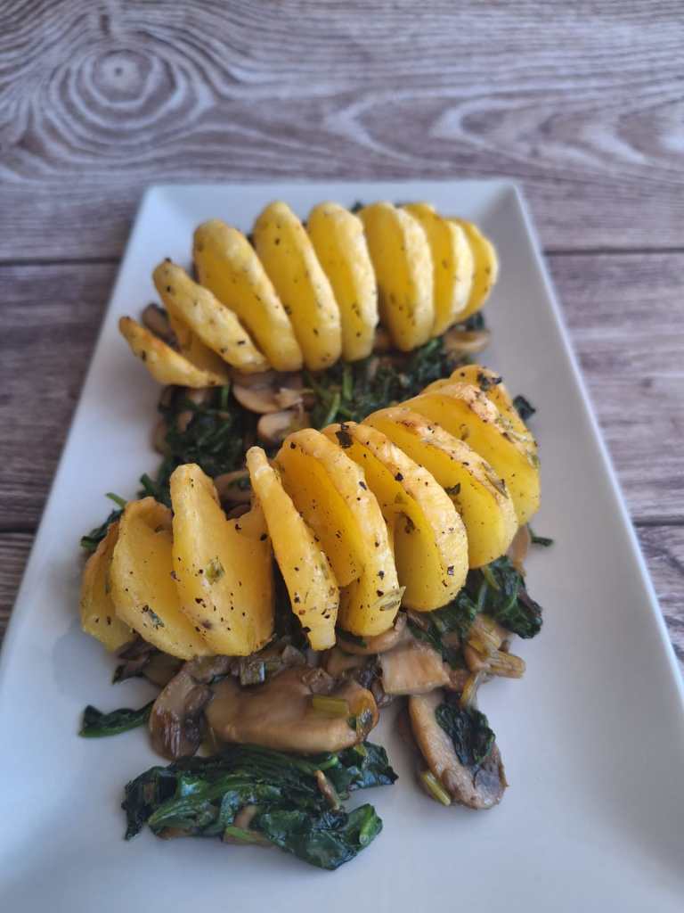 ESPIRALES DE PATATA CON ESPINACA Y CHAMPIÑÓN