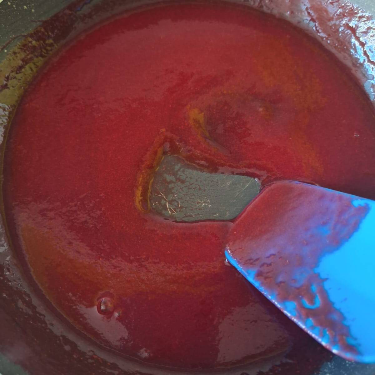 Vierte el eritritol en una sartén y deja que se disuelva a fuego bajo. Agrega las frambuesas y el vinagre y mezcla todo bien. Dejar hervir a fuego mínimo un par de minutos, retira del fuego y deja enfriar.