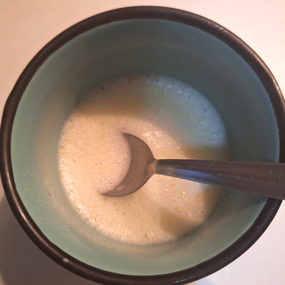 Prepara el sustituto del huevo mezclando el impulsor con el agua y el aceite. Mezcla muy bien.