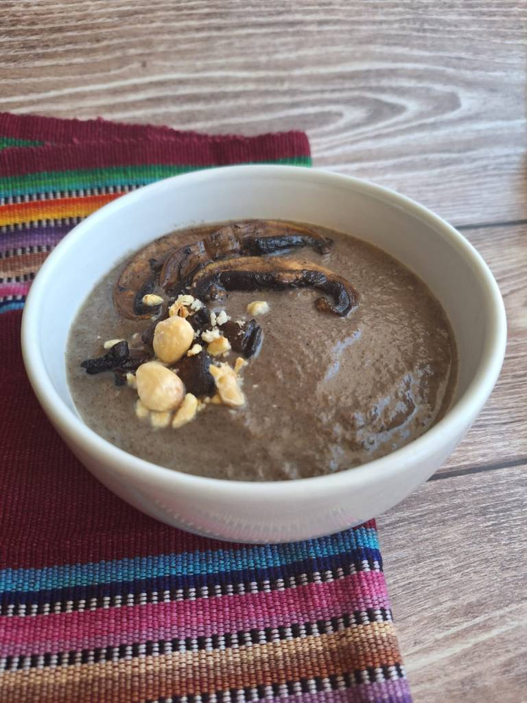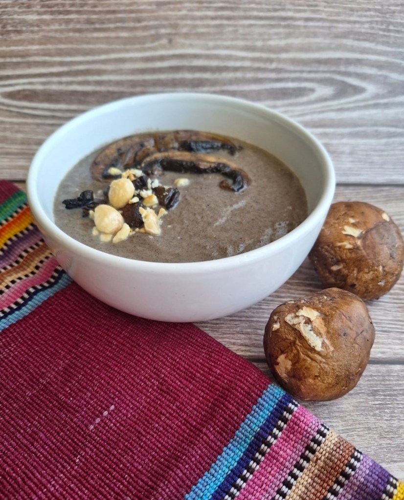 Sirve en cuencos y decora con unos champiñones salteados y unas avellanas picadas.