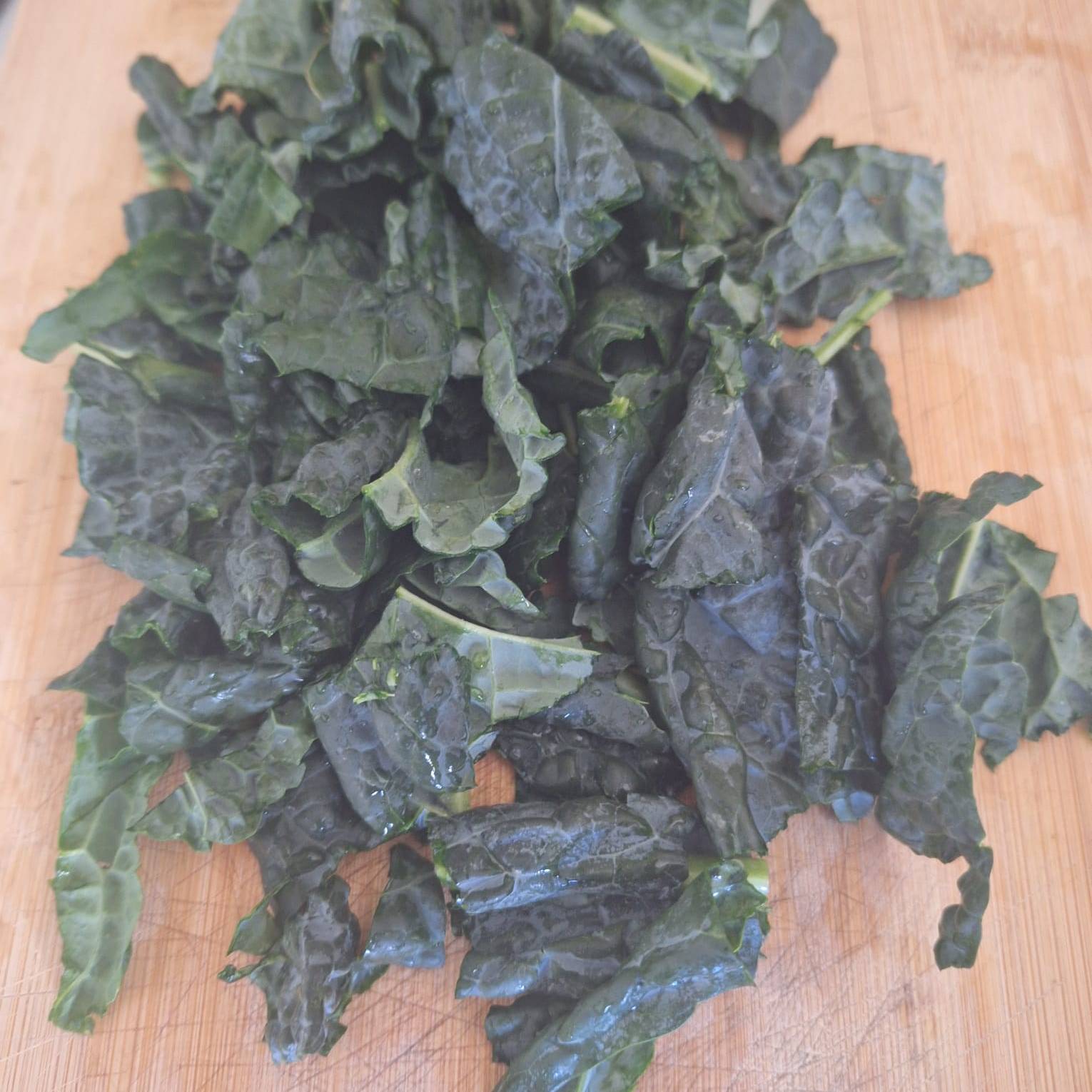 Limpia la kale, corta en trozos medianos y saltea en un poco de aceite de oliva a fuego medio.