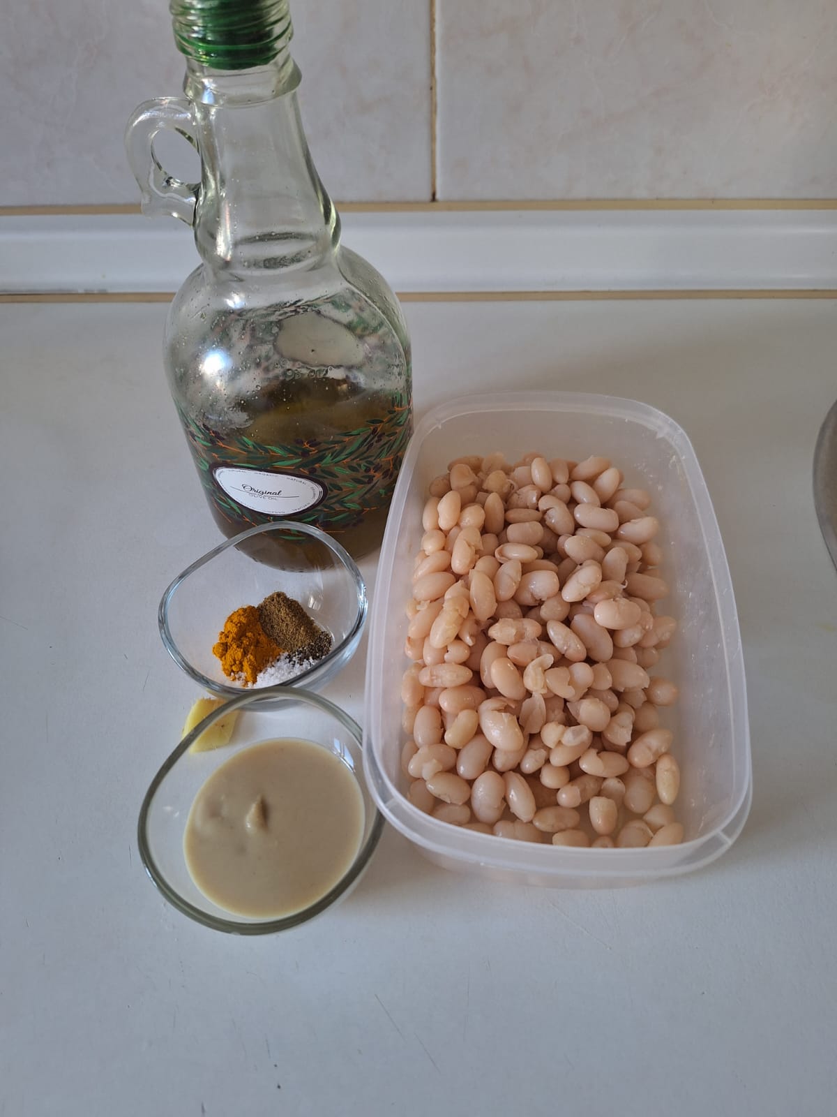 Hoy me he atrevido a hacer una versión con alubias y el motivo principal es que no me gustan. De todas las legumbres creo que es la que peor llevo, de hecho, desde que me emancipé (hace casi 2000 años), las he comido en muy contadas ocasiones (con almejas, con verduras y en salchichas veganas). En fin, que me distraigo del hilo, que intenté hacer algo con ellas para poder incluirlas un poco más en mi dieta.