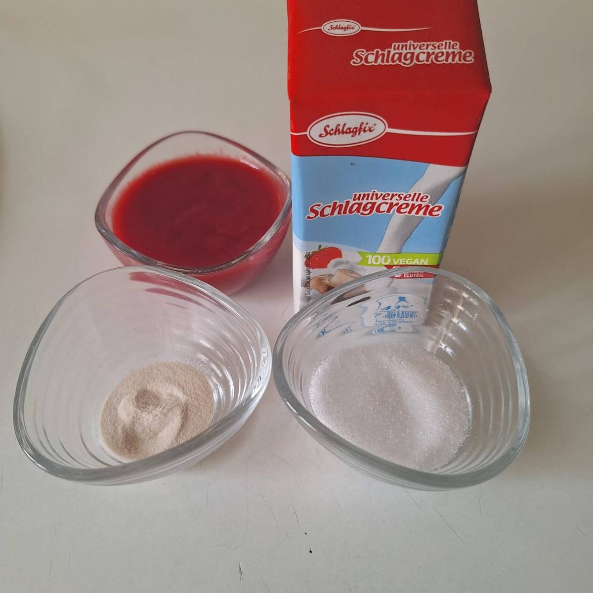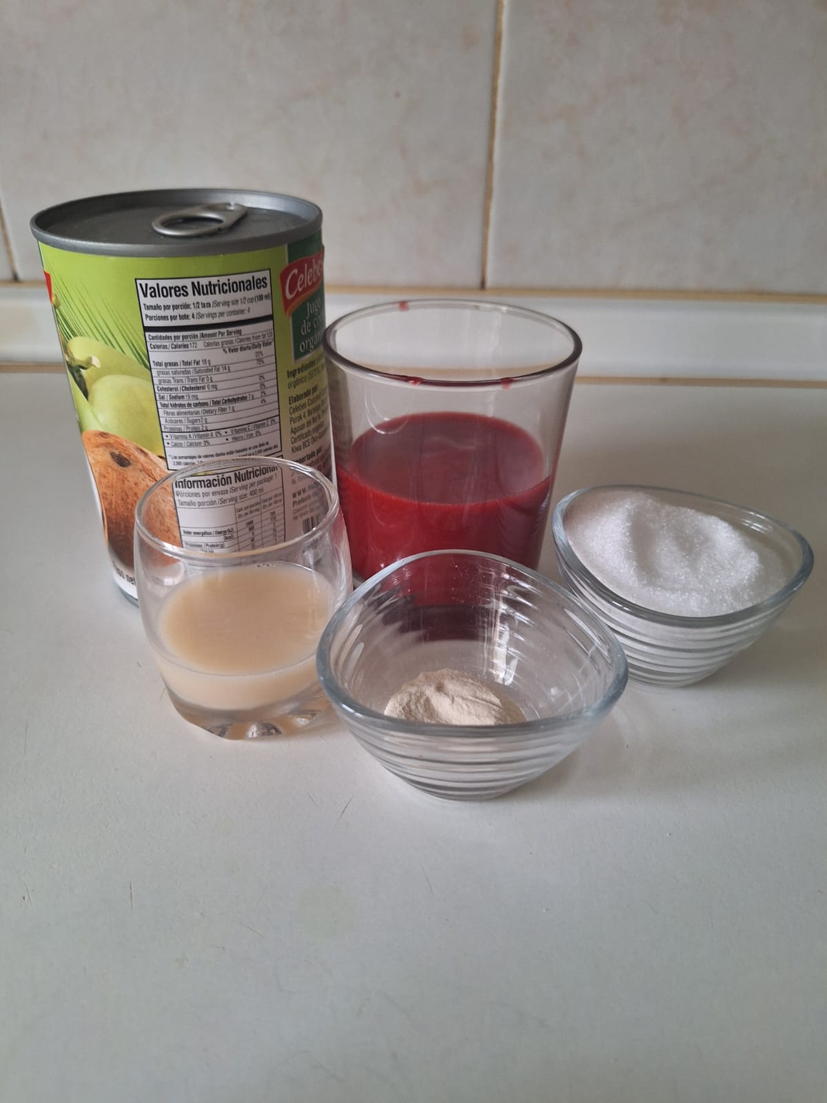 Vierte la leche de coco, el puré de frambuesa, la leche de arroz, el agar agar y el eritritol en una cazuela. Mezcla bien y deja hervir un par de minutos. Vierte en los moldes y deja enfriar. Lleva al frigo un mínimo de 4 horas.