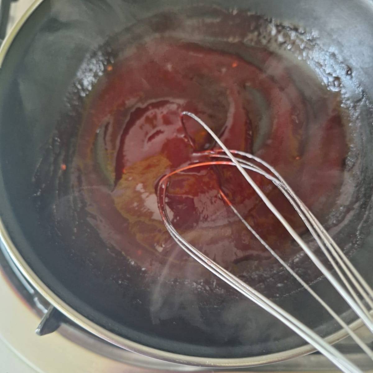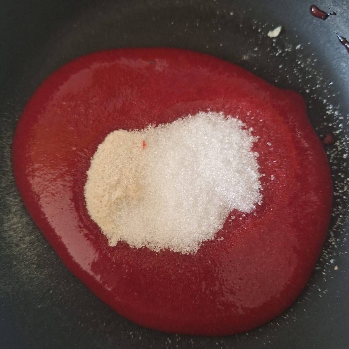 Tritura las frambuesas y pasa por el chino para retirar las semillas.