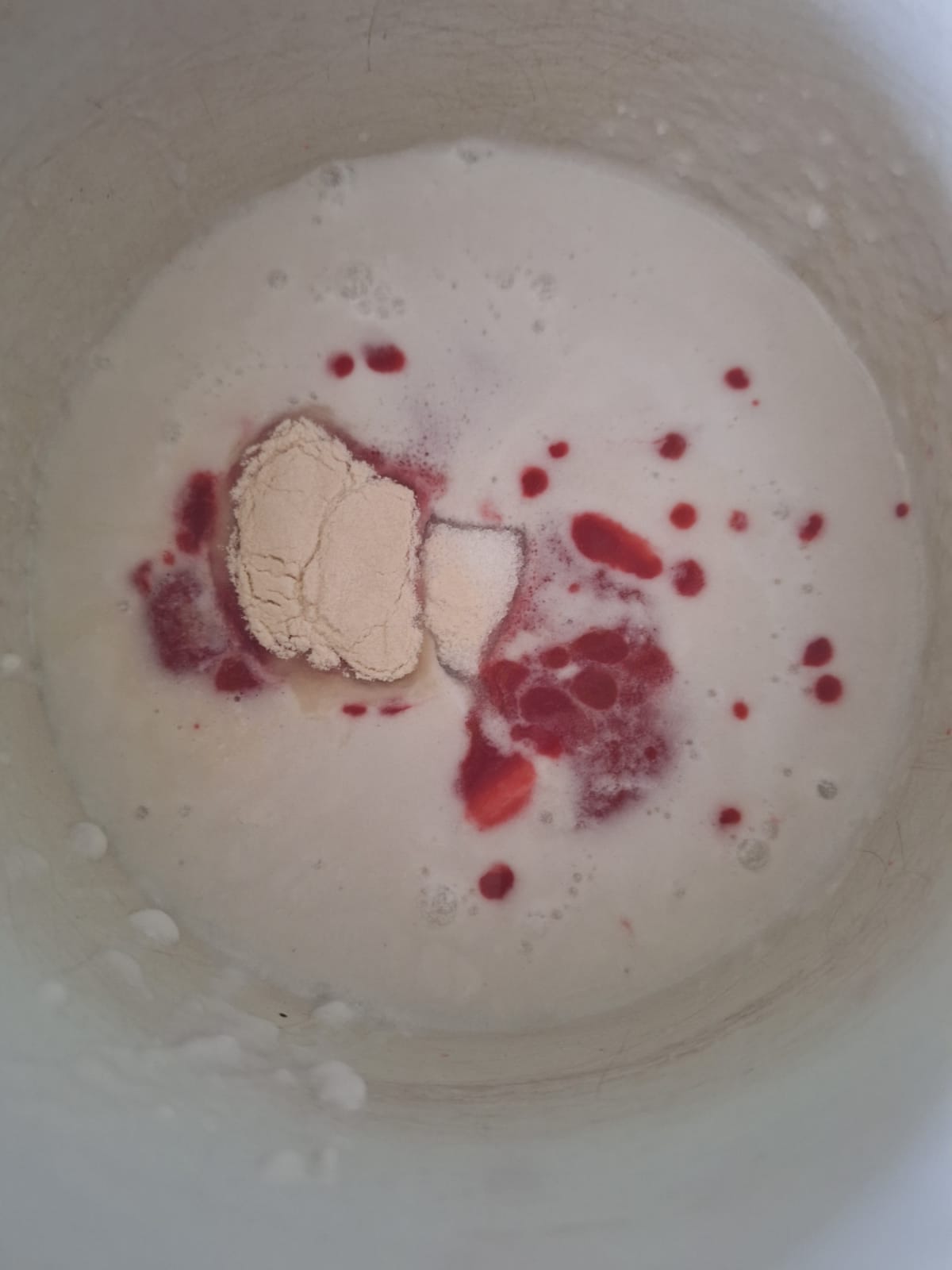 - 174 gr de puré de frambuesa (unos 225 gr de frambuesas frescas)