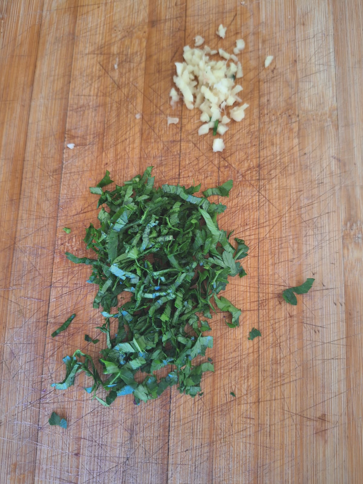 Lava el perejil y pica finamente, también el jengibre. Agrega a la sopa, rectifica el punto de sal y deja reposar 10 minutos tapado.