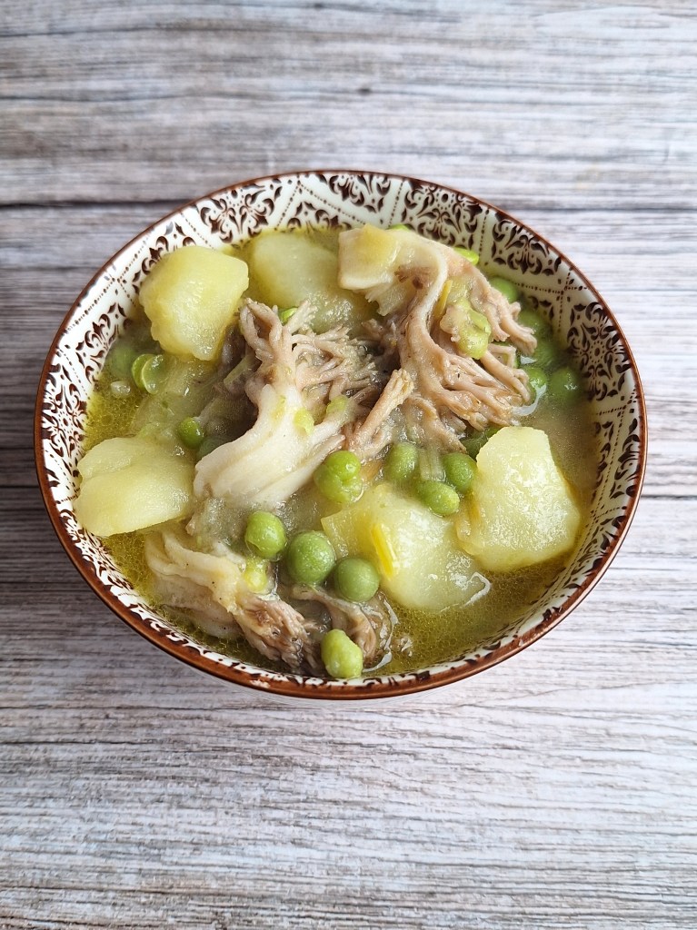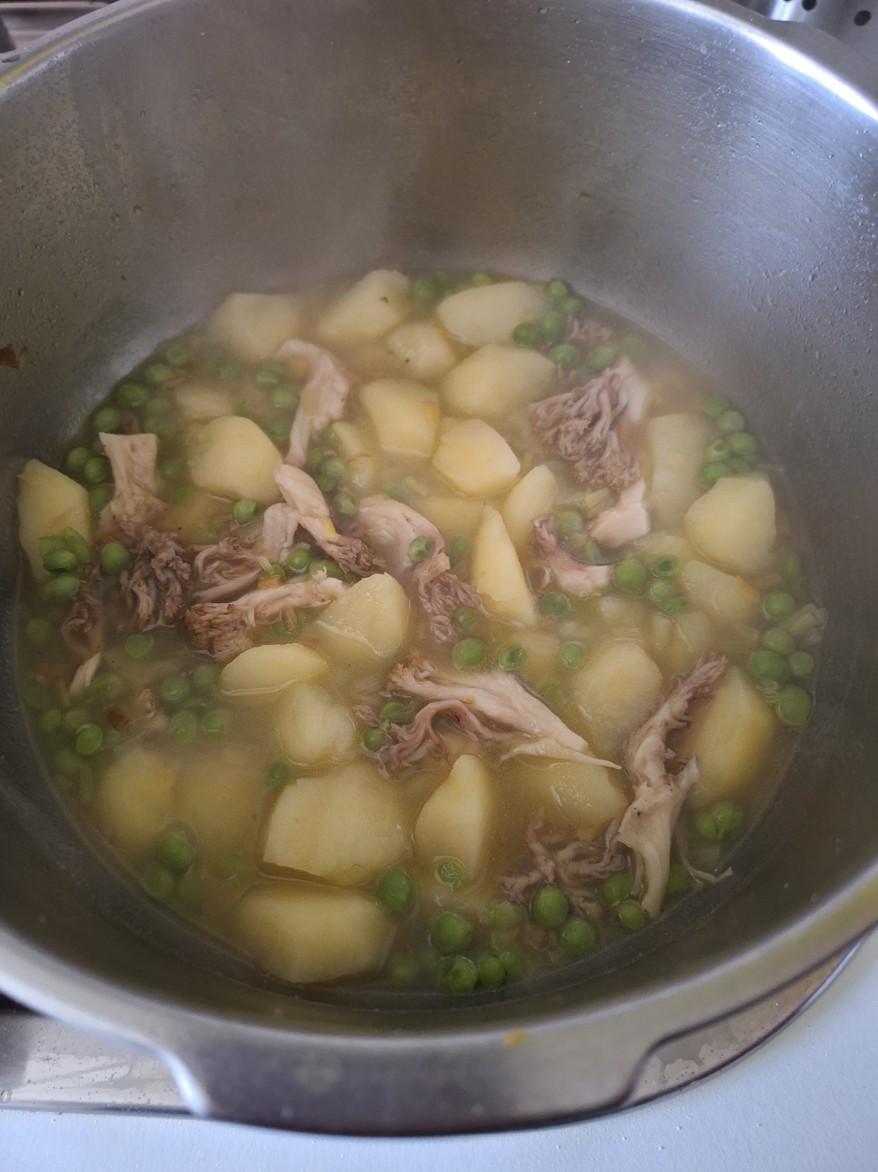 La semana pasada mi madre me dio unas cuentas y decidí hacer un par de recetas con ella, las dos de cuchareo. Las setas siempre dan un toque muy sabroso a cualquier plato. En este caso las he utilizado para acompañar unas patatas cocidas, a las que he añadido un puñado de guisantes para tener un plato más completo. Le he dado un toque de sabor especiado con curry y cardamomo muy sutil y el resultado ha sido todo un placer para los sentidos. Si tenéis la oportunidad de encontrar este tipo de seta no podéis dejar de probar este plato, estoy segura de que os va a encantar.