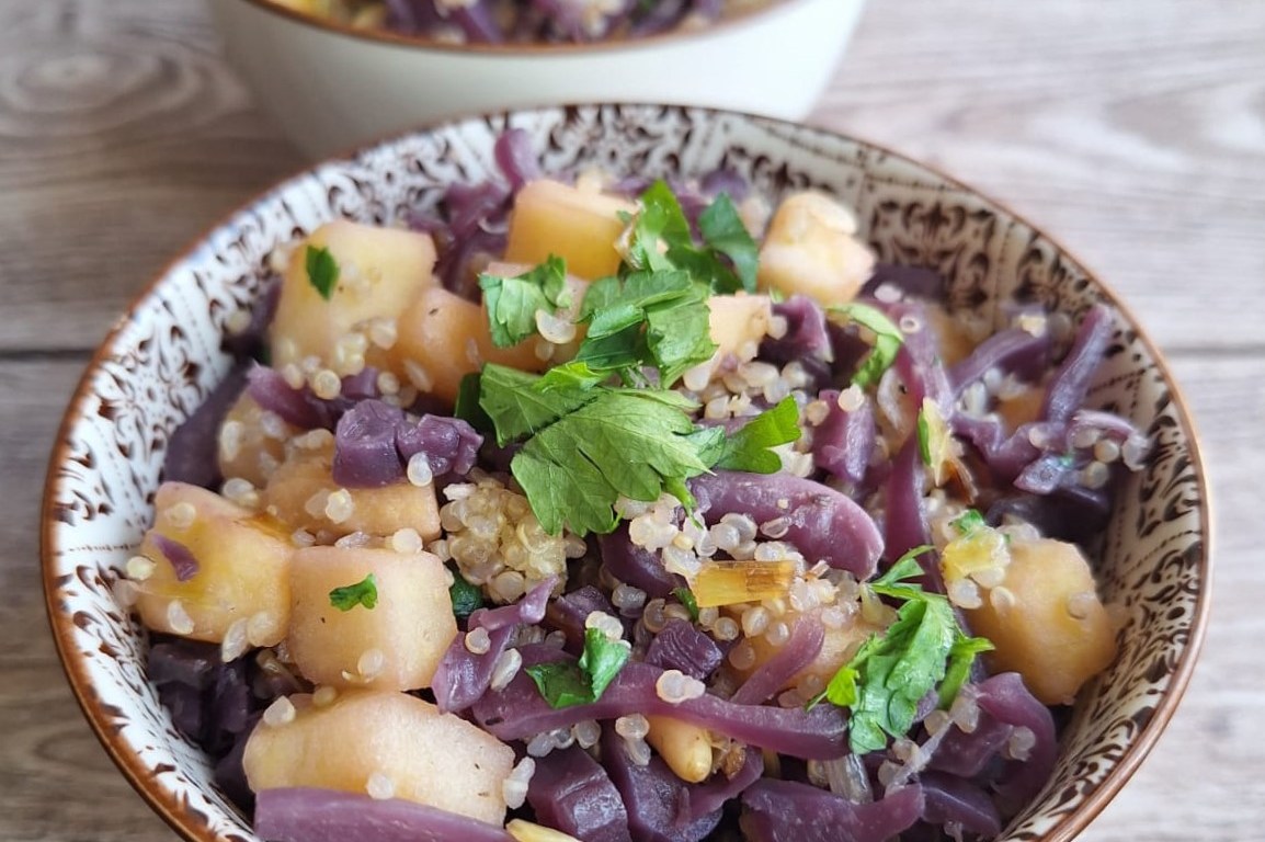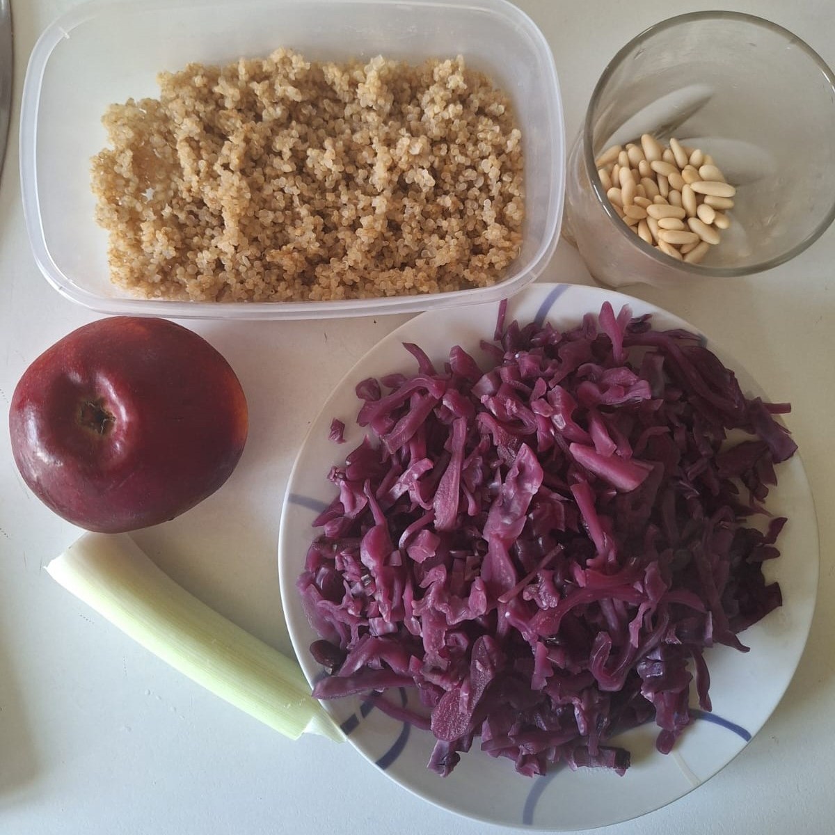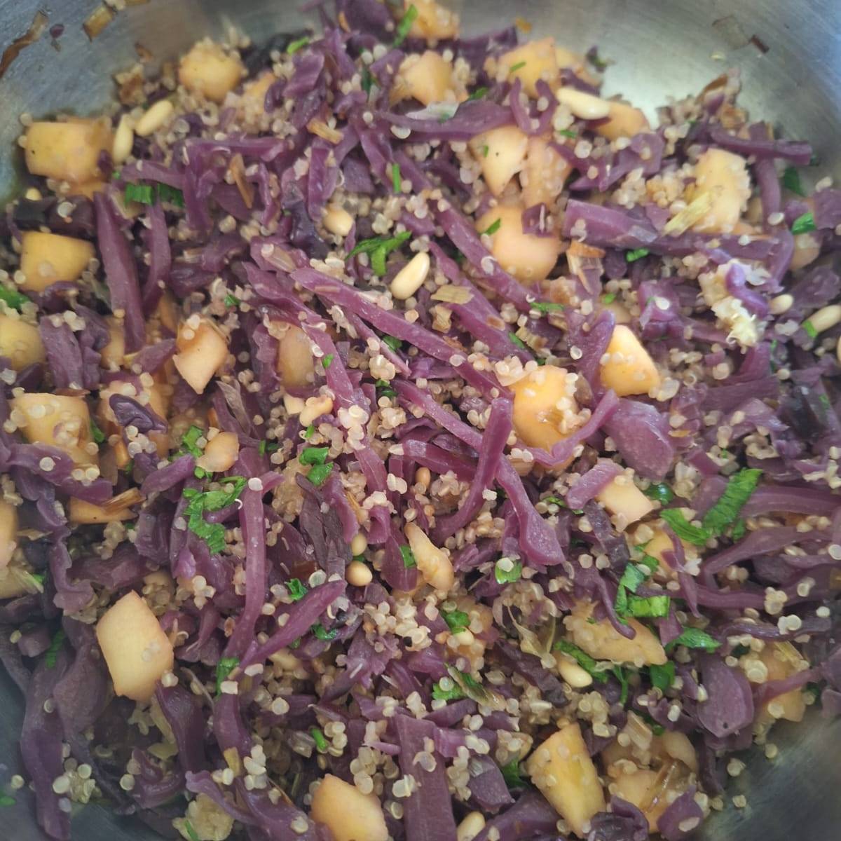 LOMBARDA CON QUINOA, MANZANA Y PIÑONES