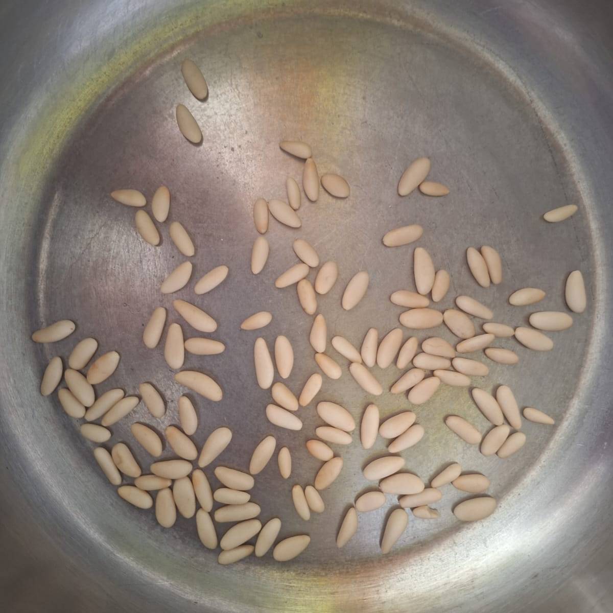 Añade la lombarda y la quinoa y mezcla todo bien. Tuesta unos piñones y agrega a lo anterior.