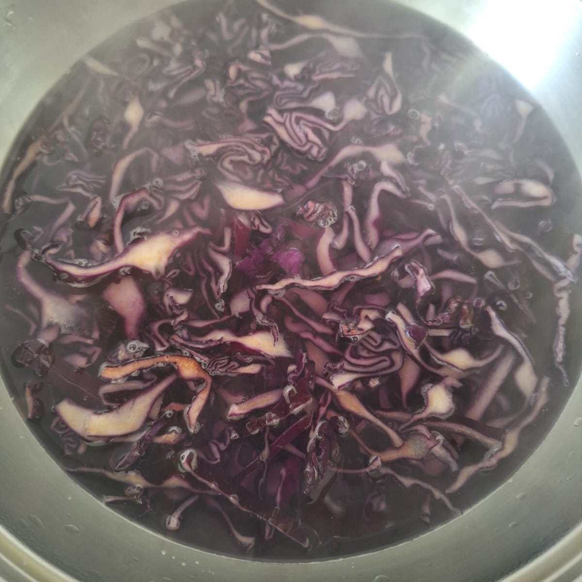 Corta la lombarda en juliana y cocina en abundante agua con sal y el vinagre hasta que esté tierna (a tu gusto). Escurre y reserva.