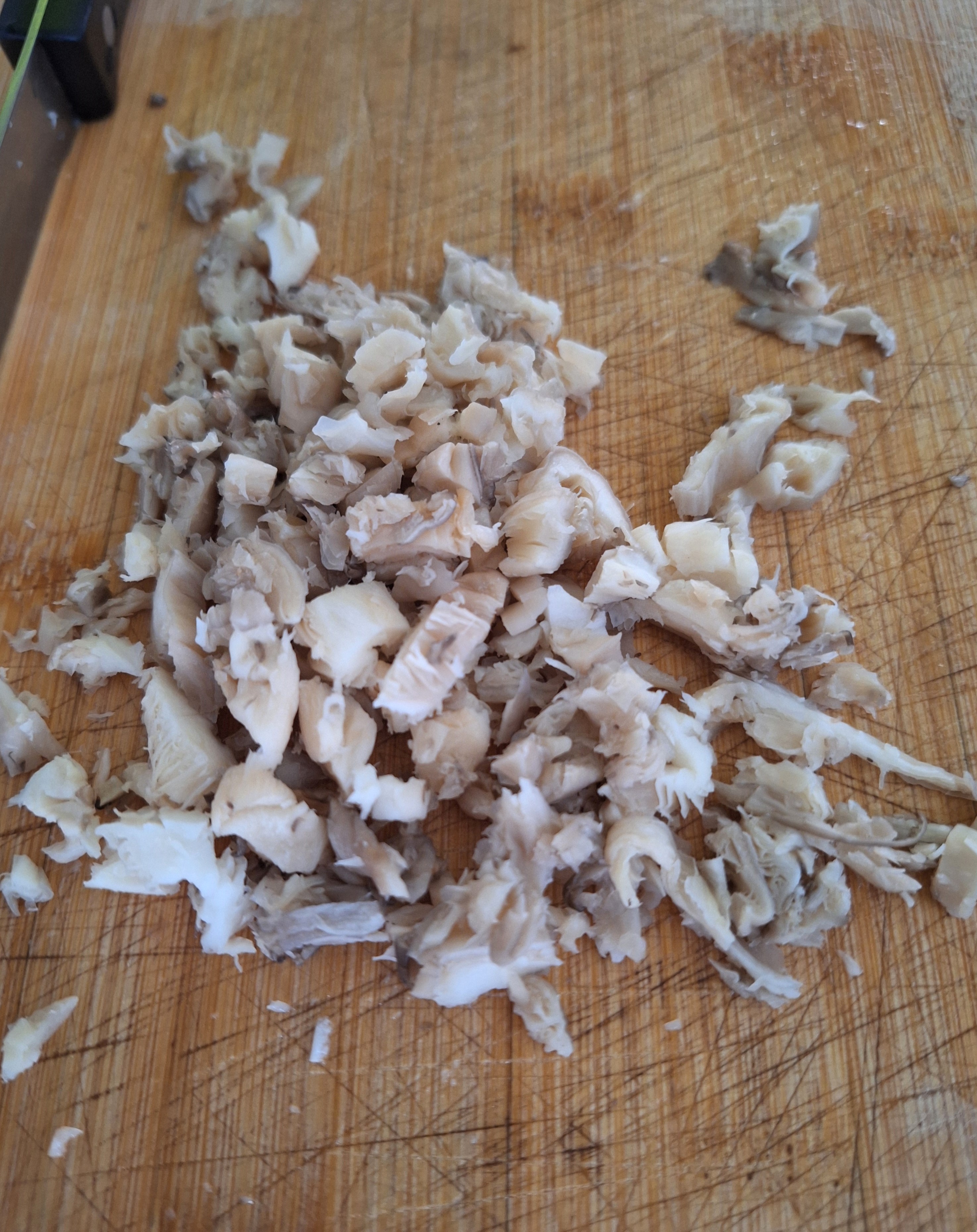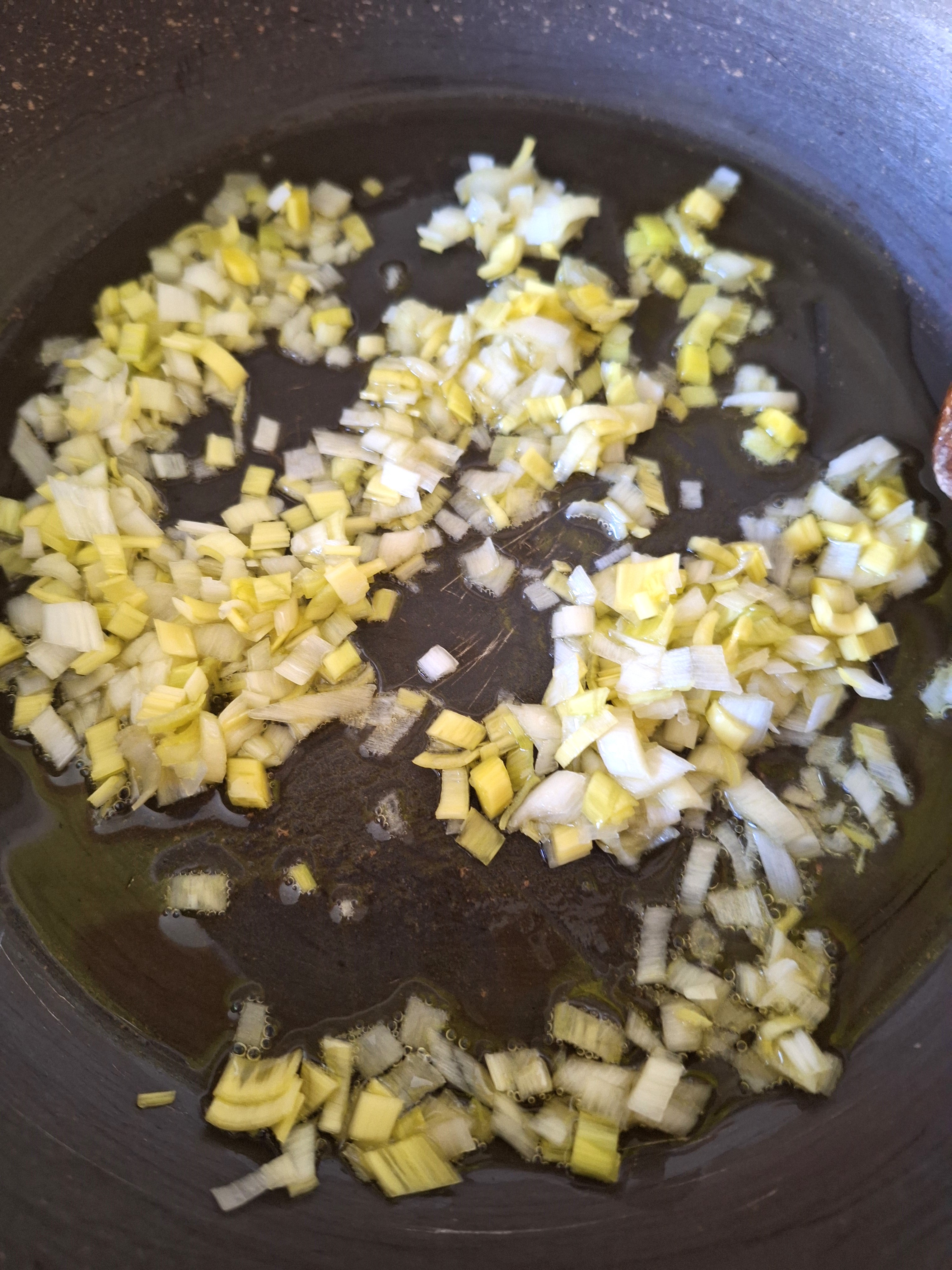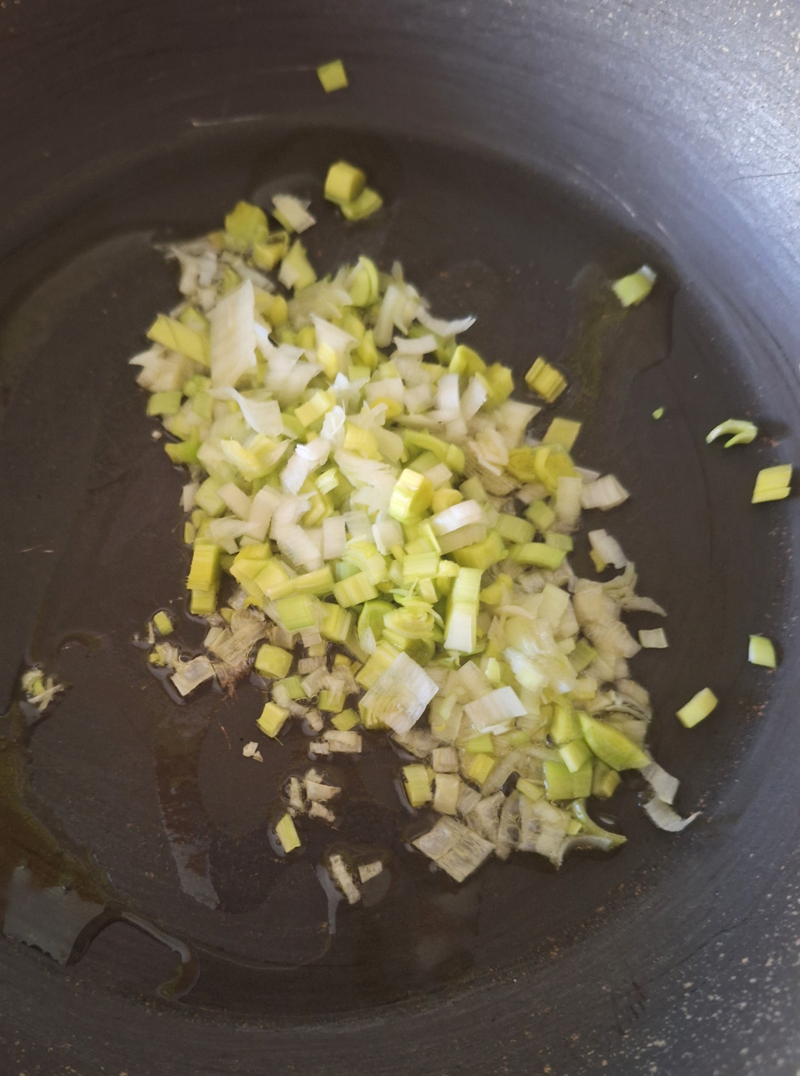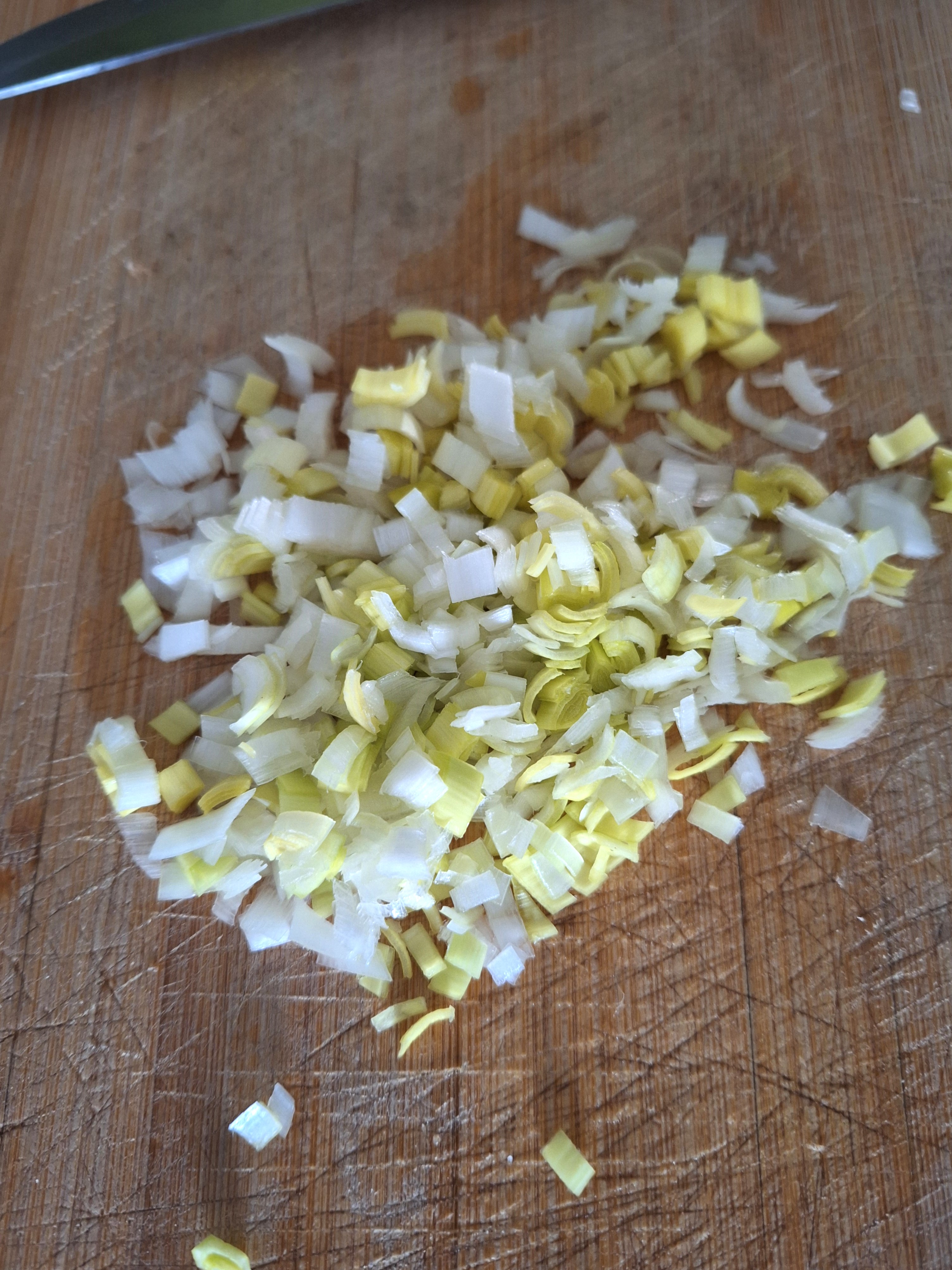 Prepara el relleno: para ello limpia el puerro y las setas y corta en brunoise.