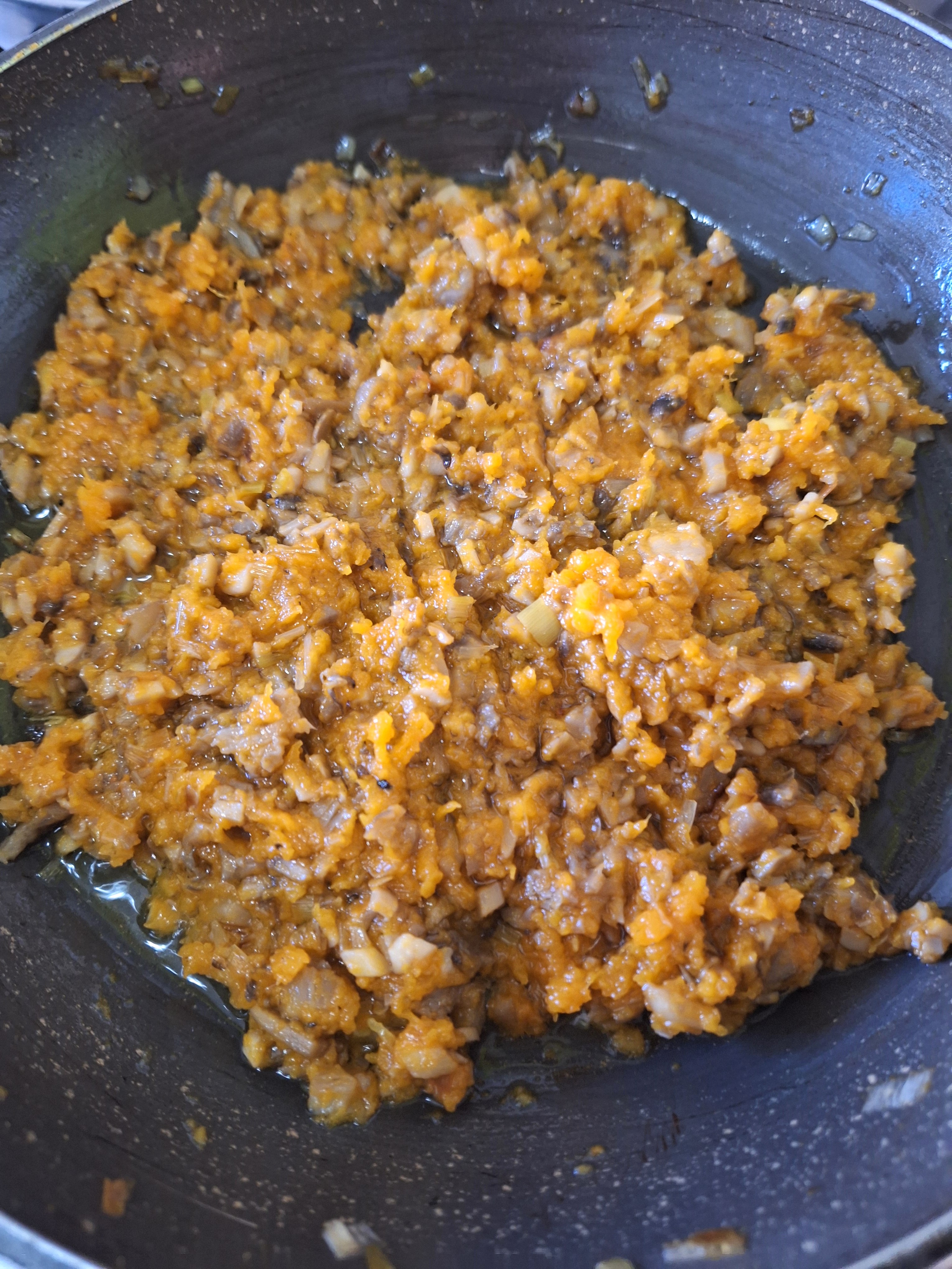 No os podéis imaginar lo mucho que me gusta la combinación de calabaza y setas y lo mucho que la utilizo para diferentes elaboraciones. Podéis triturar el relleno al final o dejarlo tal cual, yo prefiero encontrar los trocitos de setas.