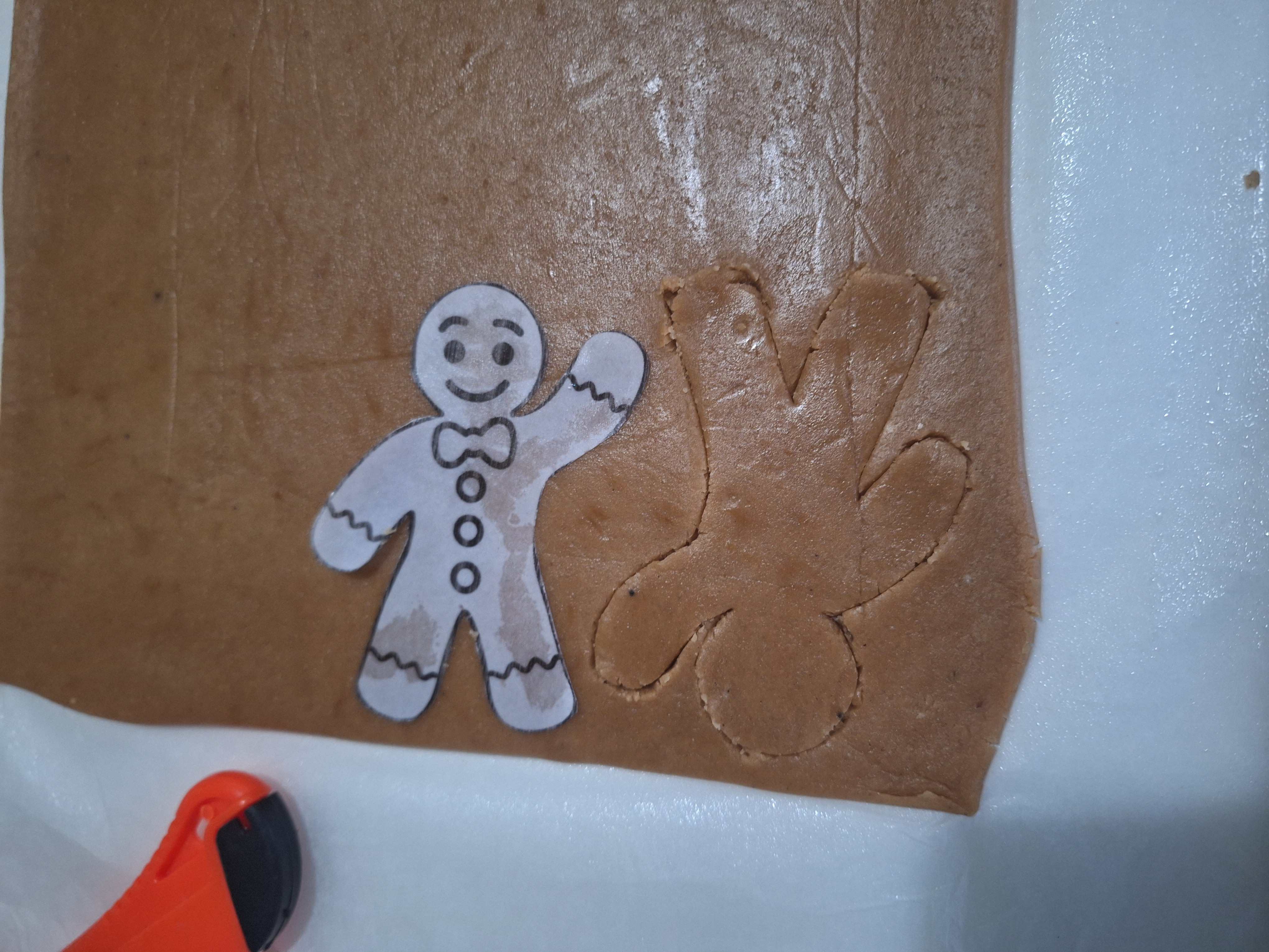 Si tienes un cortador de galletas, los muñequitos quedarán perfectos. Como no tenía hice un molde con papel y corté (como pude) con un cutter jejeje.